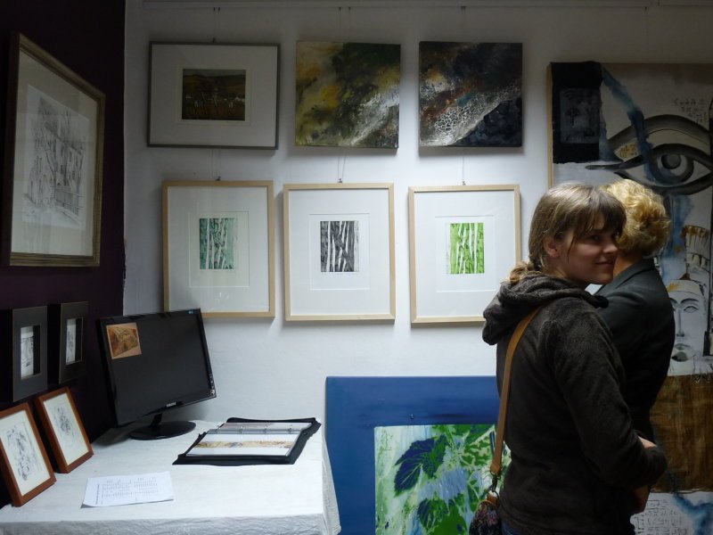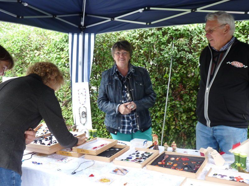 Auch wenn das Wetter schon ins herbstlich trübe Nass umgeschlagen ist, fanden bereits heute einige Besucher den Weg in das Kunstfleck am Eck, wo verschiedene Kunstwerke, farbenreicher Schmuck und zahlreiche Gemälde die Kunstliebhaber erwarteten. Heute und morgen, jeweils von 12 bis 18 Uhr, kann man dort beim Tag – oder besser gesagt: den zwei Tagen - der offenen Tür durch das bunte Haisl und seinen Garten flanieren und bei Interesse eines der unterschiedlichen Kunstwerke erwerben.