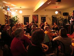 Die 4 Musiker um Josef Bichlmeier kommen ursprünglich aus der Volksmusik, der Name ist eine musikalische Beschreibung und bedeutet "verbunden". So wollen die Musiker auch ihr Repertoire verstehen, es wird der Ländler mit dem Blues, der Zwiefache mit Klezmer zu "Weltmusik" verbunden. Dazu werden vor allem Zither, Klarinette, Akkordeon und Bass eingesetzt, die vielseitigen Künstler beherrschen aber auch noch die Geige und Gitarre und gesungen und gejodelt wird sowieso. Alles in Allem ein sehr gelungenes Programm, wofür das Publikum auch reichlich Beifall spendete.