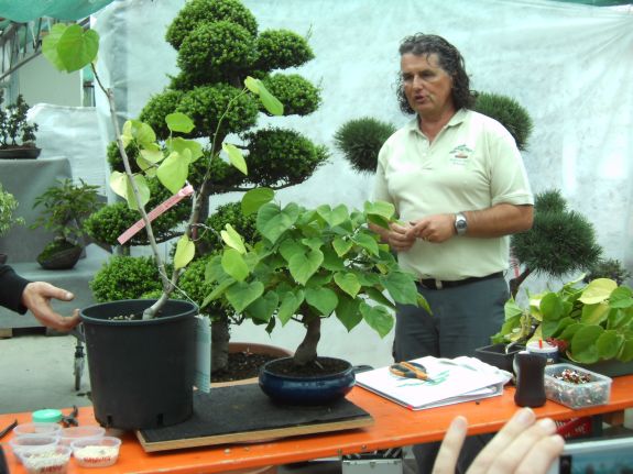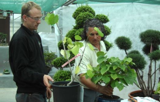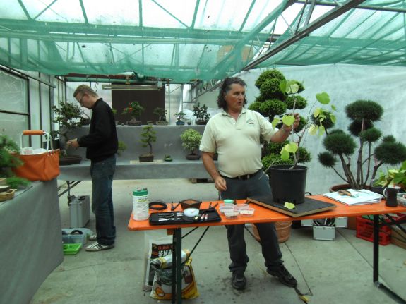 Zu beachten sei, dass ein Wurzelschnitt im Frühjahr, bevor die Blattknospen anfangen zu schwellen, getätigt werden sollte. Dies kann sogar mit einem Brotmesser erfolgen, es sei für den Baum vollkommen ungefährlich, so Erich Greissl. Um die Biegsamkeit zu erhöhen, kann der Baum längs bis ins Mark durchgeschnitten werden und mit einem Kupferdraht versehen werden. Dies ist ein Tipp der in keinem Buche steht und doch sehr wirksam ist. Der Kupferdraht müsse vorher nur abegeglüht werden, damit er seine Wirkstoffe nicht an die Pflanze weitergibt.