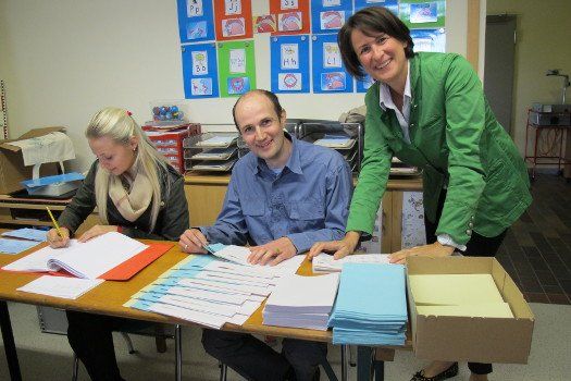 Die netten und sehr hilfsbereiten Wahlhelfer achteten darauf, dass keine Hektik aufkam und auch, dass alle Stimmzettel in den richtigen Wahlurnen landeten.