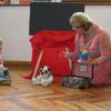 Er hatte eine gelbe Sonnenbrille auf der Nase und einen vollgepackten Koffer in der Pfote. Alle waren natürlich neugierig, was wohl da drin ist. Beim Öffnen des Koffers wurden die Augen groß und einige Kinder sprangen von ihrem Sitzplatz auf, um genau zu sehen was Frau Fuchs da alles rausholte.