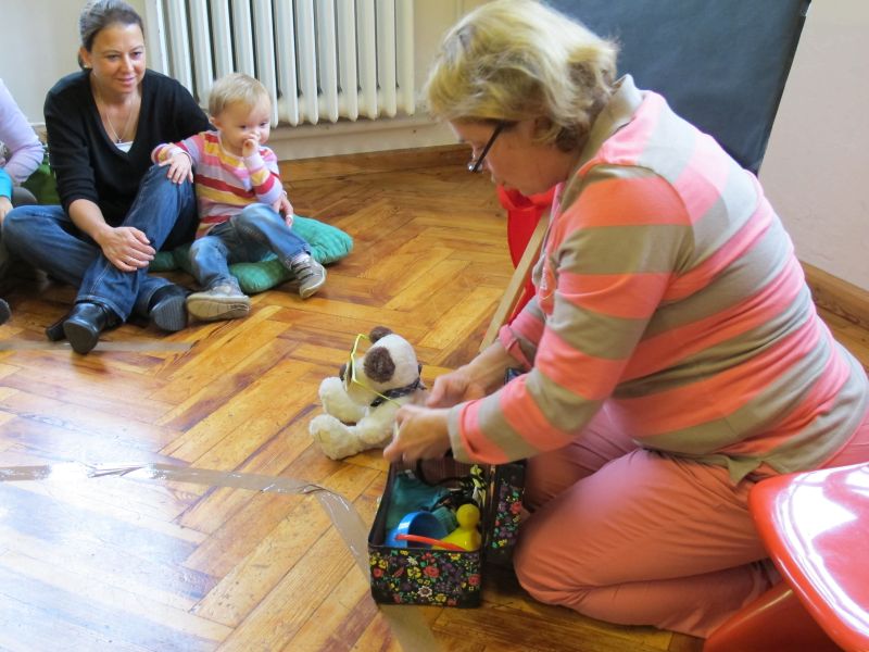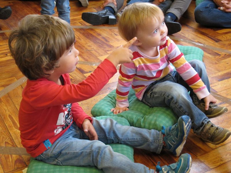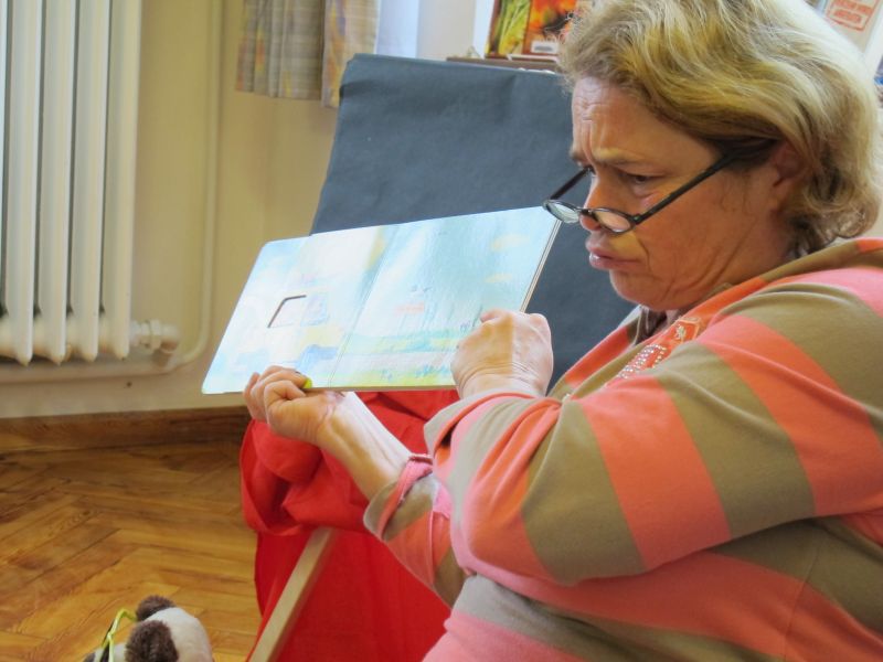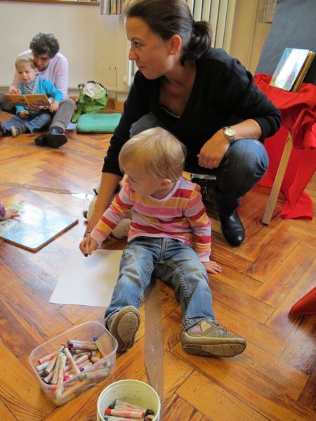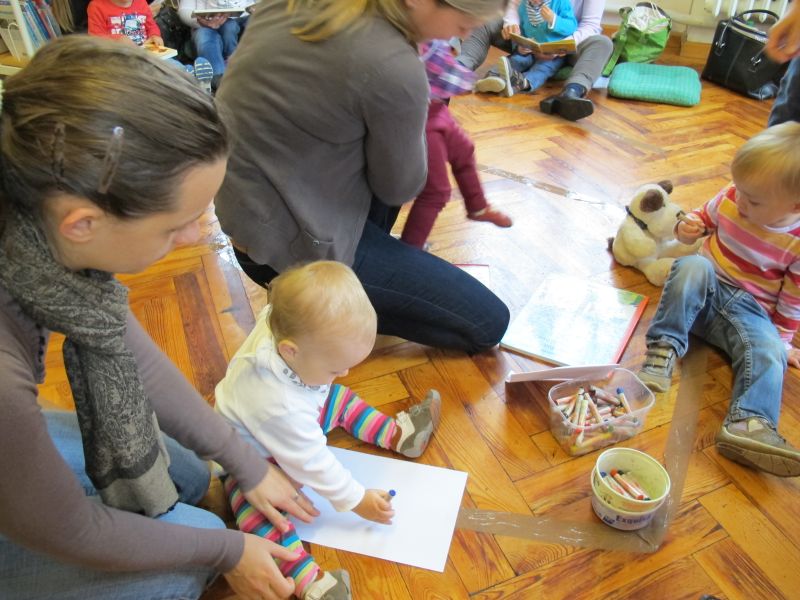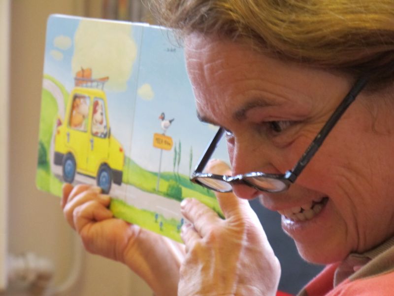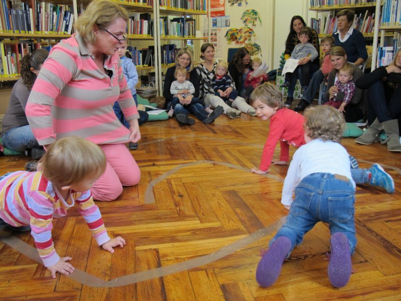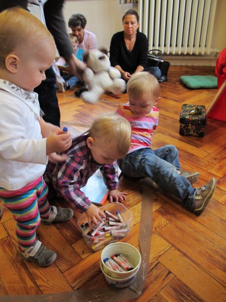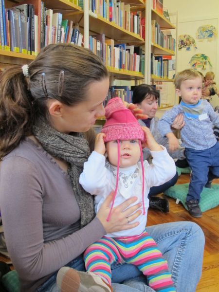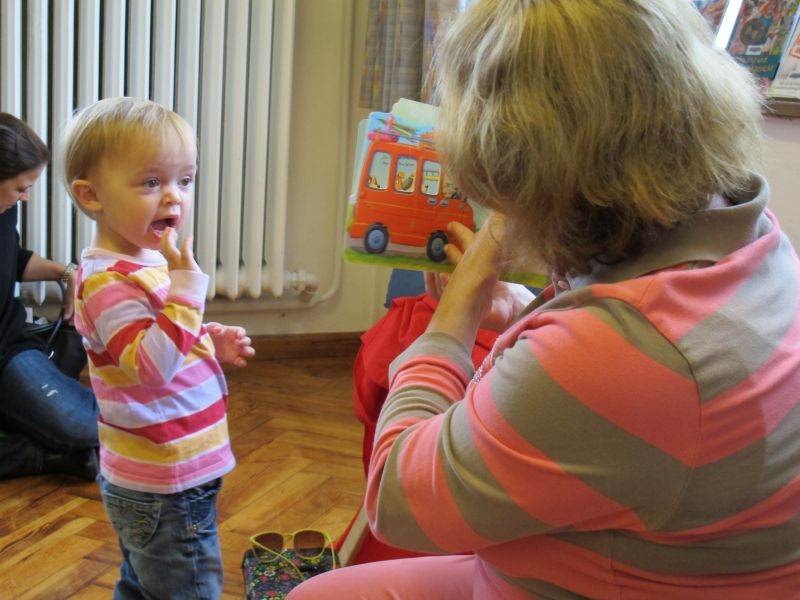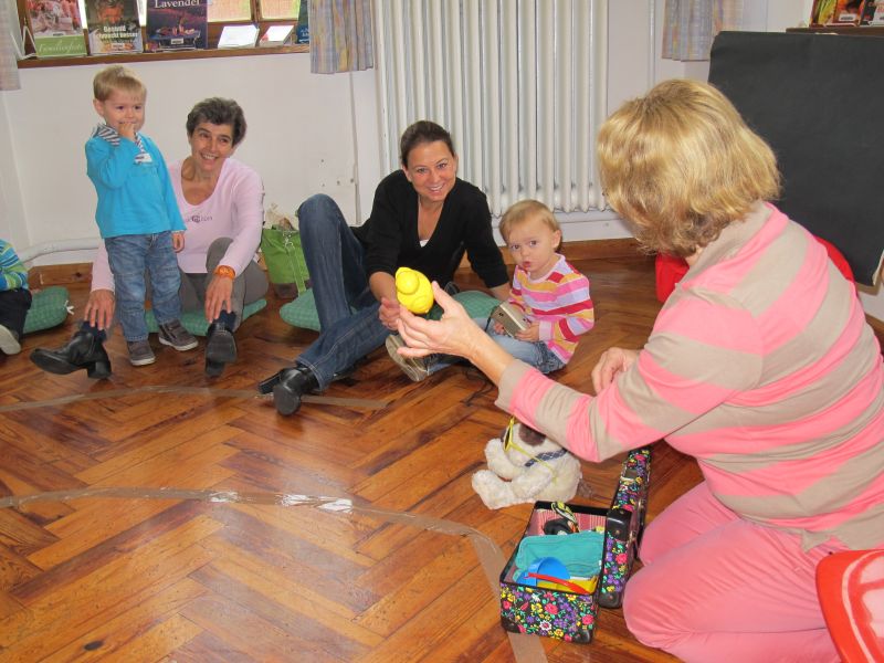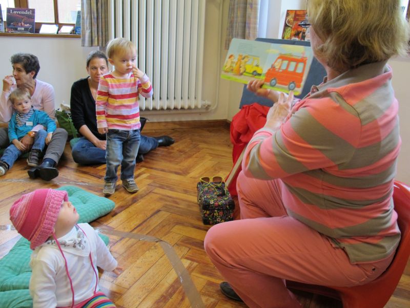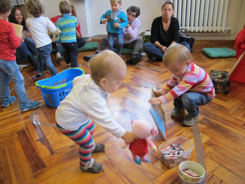 Die Krabbelkinder waren begeistert von den bunten Bildern, die Frau Fuchs ihnen immer wieder zeigte und sie beantwortete auch geduldig die vielen Fragen, wo denn nun der Roller und das Auto geblieben sind.
