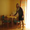 Alles war herbstlich dekoriert, teilweise auch von den Bewohnern in Bastelgruppen hergestellt. Man konnte eine Gruppe bei der Sturzprophylaxe beobachten, einer Gymnastikstunde zur Stärkung der Muskeln und der Geschicklichkeit, damit Stürze seltener vorkommen und glimpflicher ablaufen. Oder man durfte einen Blick in ein Demonstrationszimmer werfen, das identisch mit den Bewohnerzimmern ist.