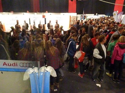 Waren es am Vormittag vorwiegend die Abschlussklassen der Schulen, die die Saturnarena zu einem quirligen Messeerlebnis machten, so besuchten in der zweiten Tageshälfte die Spezialisten die Stände und die vielen kostenlosen Fachvorträge. Umrahmt wurde der Messetag von einem