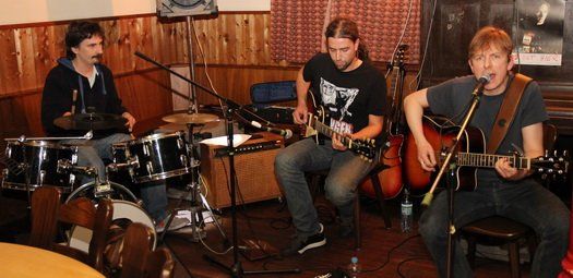 War er vor der Pause noch solo, und zum Teil leise und nachdenklich, so ging’s im zweiten Abschnitt deutlich rockiger zur Sache. Zusammen mit Chris Ertl am Schlagzeug und Tom Rothenbucher an der E-Gitarre heizten sie dem Publikum so richtig ein, nicht jedoch ohne die Gesellschaft kritisch zu betrachten. Sie stellte sich dabei nicht nur die Frage nach dem Sinn einer immer digitaleren Welt, sondern widmeten sich im Song „As Long“ vielen kritischen Themen dieser Zeit. „Eigentlich hätte dieses Lied noch deutlich mehr Strophen haben können“, so Ralph Dee, doch die 15-Minuten-Klassiker überließ der Pfaffenhofener dann doch seinem Vorbild, dem Großmeister Bob Dylan.