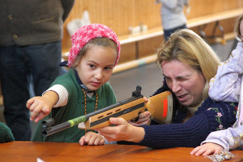 Der Zulauf bei diesem sozusagen "Tag der offenen Tür" war immens. Egal ob groß oder klein, jung oder alt, männlich oder weiblich: jeder wollte sich unter fachkundiger Anleitung an den einzelnen Sportgeräten probieren. "Das sieht viel leichter aus als es letztendlich ist." Stellte dann auch so manch einer fest, als er das Luftgewehr nach 5 Schüssen aus der Hand legte und feststellen musste, dass das Schwarze durch Kimme und Korn kleiner ist als zuvor angenommen.
