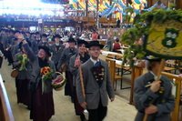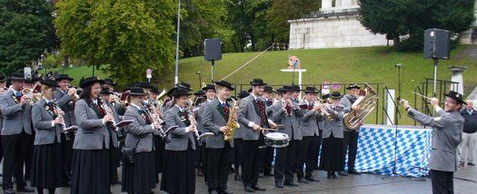 Tags darauf ging es schon wieder in die bayerische Hauptstadt. Der traditionelle Trachtenumzug stand vor der Tür. Wie selbstverständlich erschienen auch hier zahlreiche Musiker und begleiteten die Mitglieder des BSSB den weiten Weg zum Schützenfestzelt. Mit der ihnen eigenen Freude an der Musik, schaffte es die Marktkapelle wieder einmal, das Publikum für sich zu begeistern. Nach dieser ganzen Anstrengung ließen die Beteiligten den Tag im Festzelt bei Händl, Getränken und guter Musik ausklingen.
