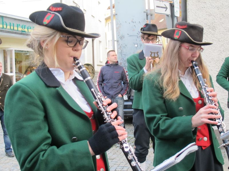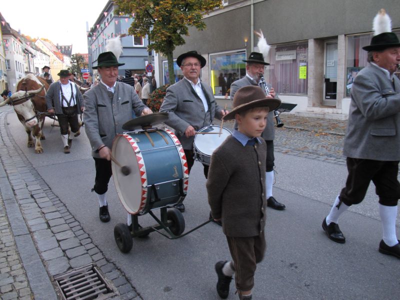 Schon beim Standkonzert auf dem Marktplatz drängten sich hunderte Besucher, um den vielen Blaskapellen zuzuhören und einige ließen sich mit dem Ochsengespann auf einem Foto verewigen.