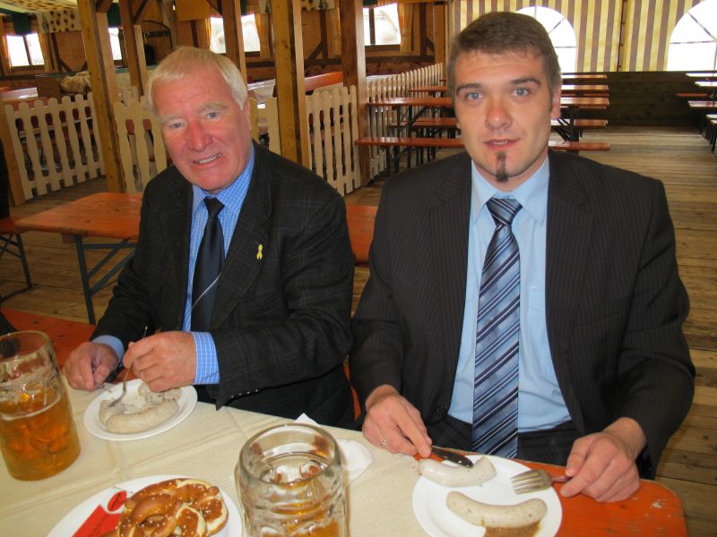 Besonders die Gäste aus dem Ausland wie USA, Russland, Griechenland, Ukraine usw. genossen die bayerische Spezialität mit gesundem Appetit. Bürgermeister Josef Reiser begrüßte im Anschluss alle Ehrengäste namentlich, sowie alle anderen Besucher.
