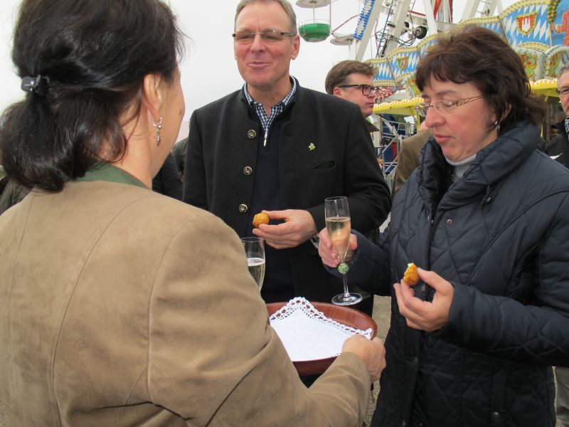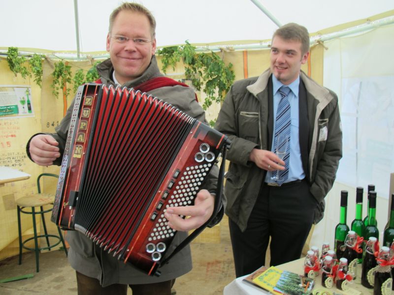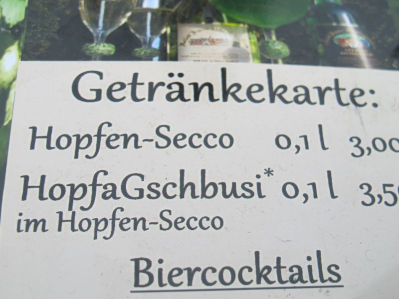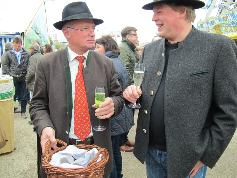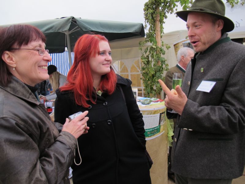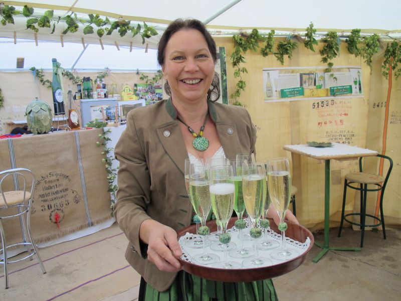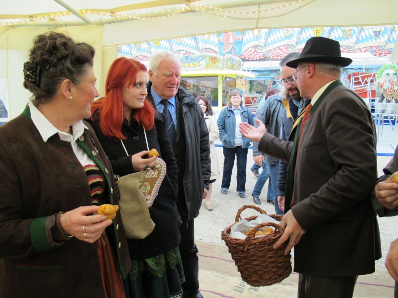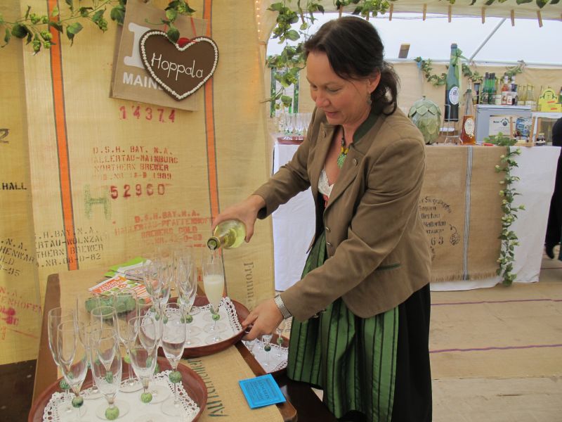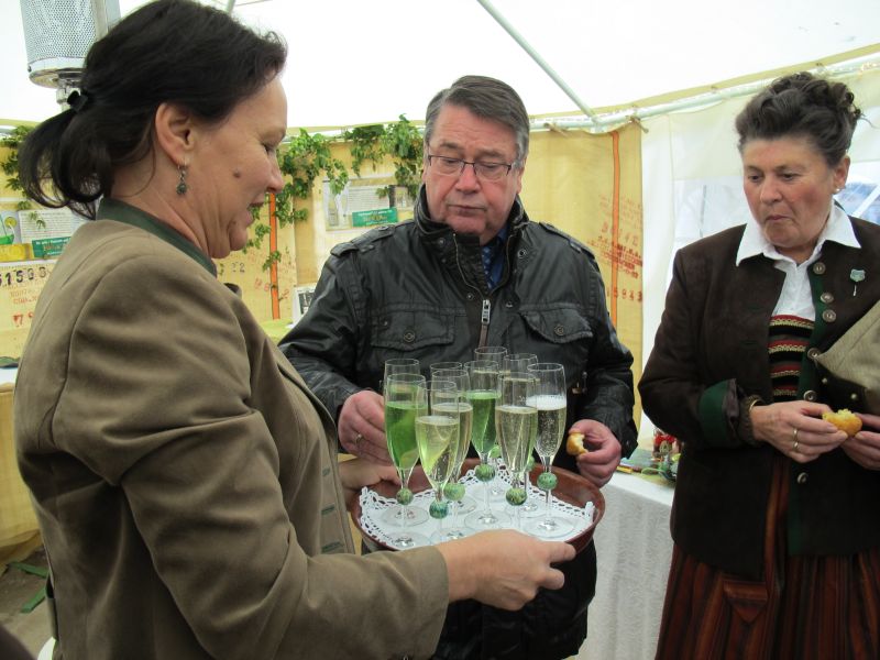 Erste Station war der Stand von Hildegard Heindl. Bei ihr durfte vom leckeren Hopfen-Secco und dem neuen HopfaGschbusi gekostet werden. Dazu gab es selbstgebackene Kircheen, die Bürgermeister Reiser großzügig an seine Gäste verteilte.