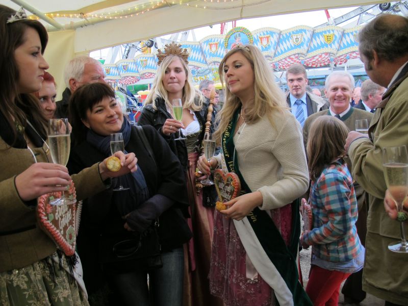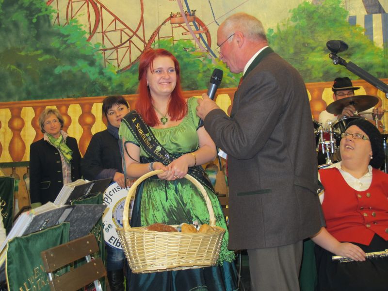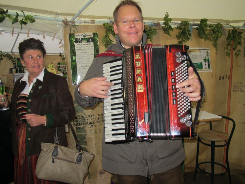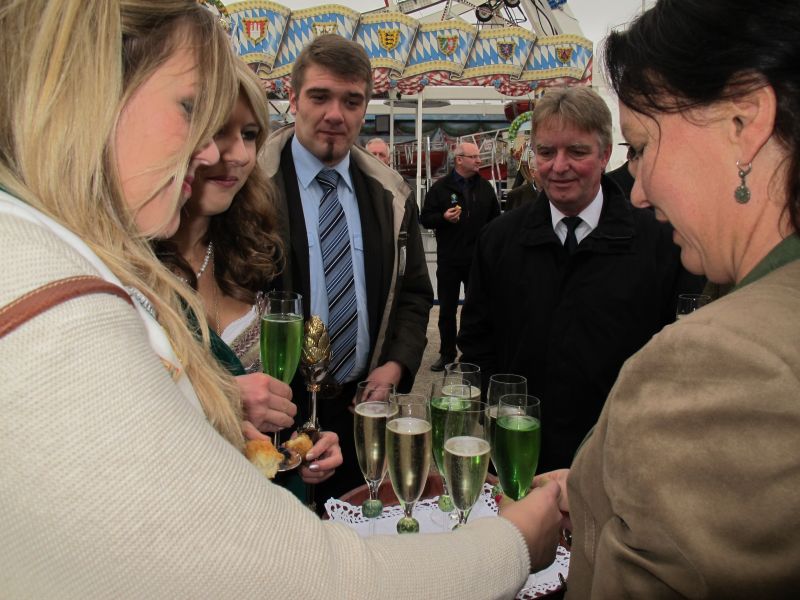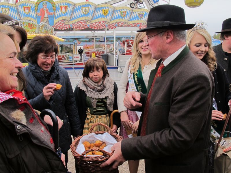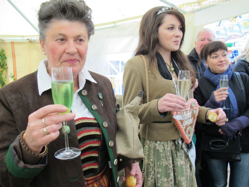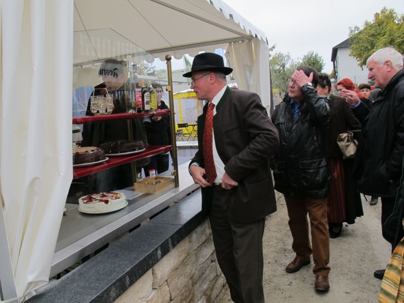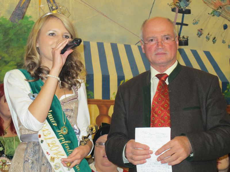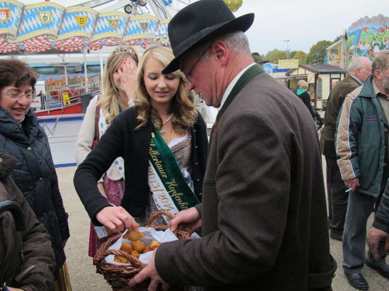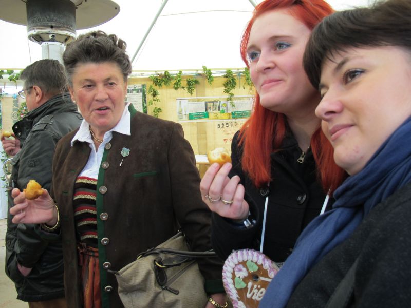 Erste Station war der Stand von Hildegard Heindl. Bei ihr durfte vom leckeren Hopfen-Secco und dem neuen HopfaGschbusi gekostet werden. Dazu gab es selbstgebackene Kircheen, die Bürgermeister Reiser großzügig an seine Gäste verteilte.