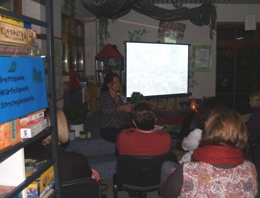 „Schön, dass sich so viele von ihrem Wohnzimmersofa aufgerafft haben und zu uns in die Bücherei gekommen sind“, freute sich Büchereileiterin Andrea Mion über den großen Andrang und gab das Wort auch gleich an die Referentin weiter.