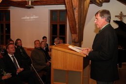 Zwischen den einzelnen Passagen, die den Zuhören zuerst ins Mittelalter, genauer gesagt in die Zeit Karls des Großen entführen und dann den Bogen über die Kirchengeschichte bis in die Neuzeit spannten, sorgte Michael Haupt, ein begnadeter Wolnzacher Pianist, mit Stücken von Bach, Chopin und Schubert für den feierlichen Rahmen dieser Lesung. „Mich freut es sehr, dass wir ihn heute für diesen Abend gewinnen konnten“, so Alois Siegmund.