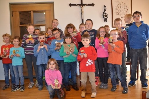 Bis kurz vor dem Genuss der köstlichen Gemüsesuppe wurde noch eifrig am Kartoffelkönig gebastelt beim Kindertreff der Pfarrei Langenbruck-Puch-Hög. Der Langenbrucker Pfarrsaal diente dabei als Koch- und Bastelstudio für 23 begeisterte Kinder im Alter zwischen sechs bis zehn Jahren.