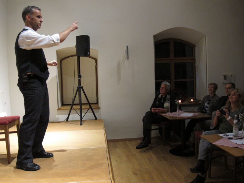 Was eine Zuschauerin veranlasste, ihn in der Pause darauf anzusprechen: „Wenn sie mei Mo warn, dann dad i ihnen Gift in Kaffee!“, darauf gab der wortgewandte Kabarettist zur Antwort: „Und wenn sie mei Frau warn, dad i ihn a dringa!“