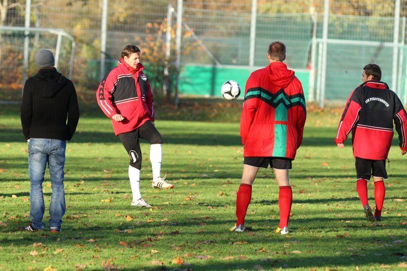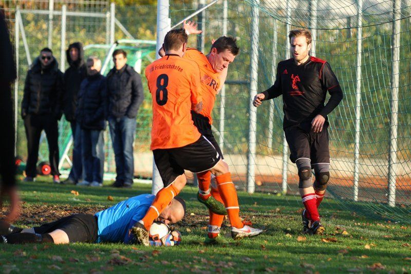 Kalt war es, der Wind tobte. Aufgrund der schlechten Wetterlage war das Stadion gesperrt und das Sonntagsspiel gegen den VfB Friedrichshofen musste auf den Nebenplatz verlegt werden. Laub und Nässe machten das Spiel nicht gerade angenehm und beide Mannschaften mussten sich zunächst auf den rutschigen Boden einstellen. Der Held des Tages war Josef Blumenfelder, der bereits zur 12. Spielminute per Kopfballtor dem FSV zur Führung verhalf. Eine erneute Chance bot sich zur 14. Minute auf, als Alexander Pöckl bis zu Torwart Christopher Ort durchschnellte. Doch kam er zu spät und Ort sicherte den Ball. Lange geschah nichts Weltbewegendes mehr auf dem Platz. Kurz vor der Halbzeitpause setzt Josef Blumenfelder erneut zum Kopfball an und wurde für ein 2:0 von seinen Spielkameraden bejubelt.