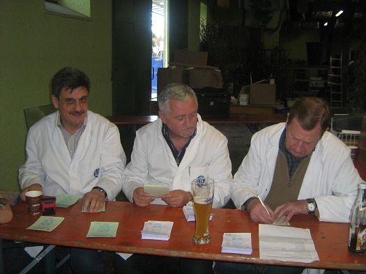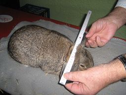 Dann wurde es ernst: Jedes einzelne Tier wurde aus seinem Käfig genommen, gewogen und gemessen, und dann genauestens von mindestens einem Richter begutachtet. Kam dieser zu einem "hervorragenden" Ergebnis, musste sogar noch ein weiterer Richter die Benotung bestätigen. Da wurde wirklich jedes kleinste Detail bewertet, die Länge der Ohren, der Zustand des Felles, die Stellung der Zähne, die Farbe der Augen und des Felles, der Körperbau und nicht zuletzt der Pflegezustand. Die meisten Tiere ließen das alles geduldig über sich ergehen. Die Sieger der jeweiligen Rassegruppen werden in einem Katalog am Wochenende vorgestellt und dürfen auch Preise mit nach Hause nehmen.