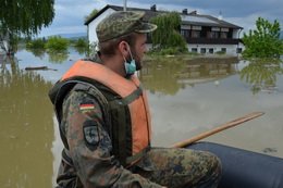 Doch nicht nur im Ausland hat die Bundeswehr wichtige Aufgaben zu erfüllen, auch innerhalb Deutschlands sind die Gebirgspioniere im Einsatz. So zuletzt beim diesjährigen Jahrhunderthochwasser, das auch Wolnzach nicht verschonte, in anderen Gebieten jedoch noch deutlich größere Schäden verursachte. Besonders in Deggendorf und Passau hatten die Menschen mit der Flutwelle zu kämpfen. Schon am 02. Juni stand Holger Pöppe daher mit seinen Pionieren in Ingolstadt abfahrtbereit. Da allerdings der offizielle Antrag des verantwortlichen Landkreises Deggendorf noch bis zum 09. Juni auf sich warten ließ, schickte der Oberstleutnant bereits am 04. Juni Soldaten in das Krisengebiet. So unterstütze das Bataillon mit insgesamt 147 Mann und zahlreichen Pioniermaschinen die Fluthilfe in Deggendorf und Passau. Im Rahmen des Einsatzes halfen sie unter anderem bei der Trockenlegung der Autobahn sowie bei Tier-Rettungsaktionen im Fischerdorf und leisteten damit einen wichtigen Beitrag zur Bekämpfung der Wassermassen und Eindämmung ihrer zerstörerischen Wirkung.