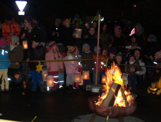 Der Korbinian-Kindergarten begann seine Veranstaltung im Rondell vor dem Haus. Beim Johannes-Kindergarten trafen sich Kinder und Eltern im Garten zu einem großen Lichtermeer ein. Anschließend zogen alle Kinder, Eltern und Betreuer mit ihren selbstgebastelten Laternen aus zwei Richtungen zur Hopfenhalle, wo sie sich um ein großes Feuer versammelten und lauthals ihre Lieder sangen. Das Lichtermeer mit den vielen Laternen ist für die Kleinen immer etwas ganz Besonderes. Mit leuchtenden Augen standen sie vor dem großen Feuer und hielten ihre eigenen Laternen fest umklammert. Damit auch ja nicht die Kerze ausgeht.