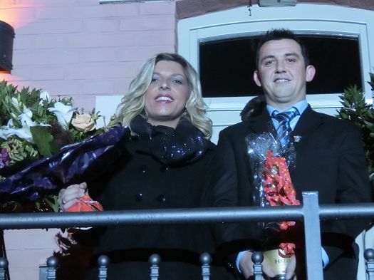 An ihrer Seite, ebenfalls aus einer Auer Faschingstraditions - Familie, Sebastian Hillebrand, 30 Jahre, Neffe des 2maligen Faschingsprinzen Michael Hillebrand und seit 2007 Mitglied bei der Narhalla. Beide sagten, sie freuten sich sehr auf die bevorstehende Saison und am schönsten sei, dass die Lügerei der letzten Wochen endlich zu Ende sei.