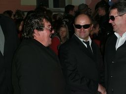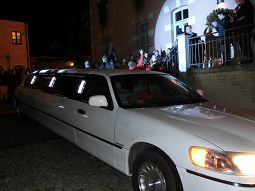 Nach einer erwartungsvollen Pause traf dann endlich das Prinzenpaar ein - in einer weißen Strechlimousine, die kaum die Kurve auf den Marktplatz schaffte! Heraus stiegen 4 finstere Gestalten, die Bodygards, die das Prinzenpaar abschirmten, bis sie oben auf der Treppe mit Jubel begrüßt wurden.