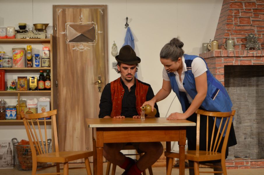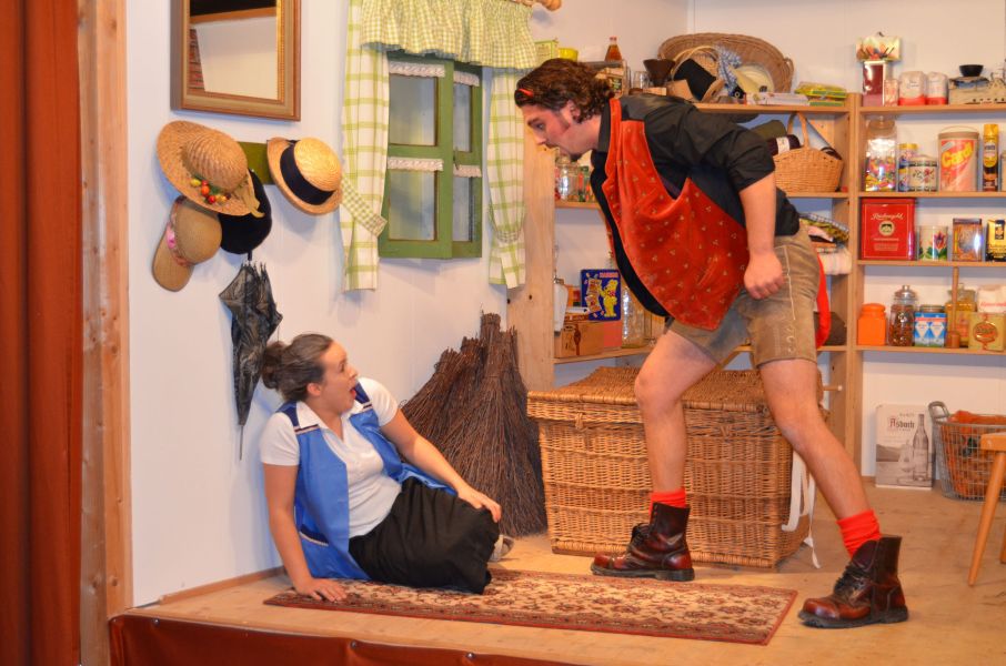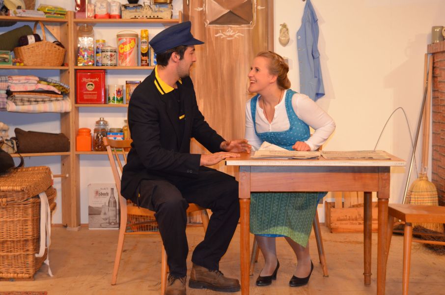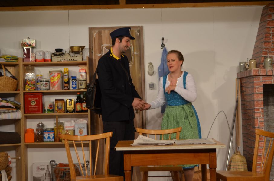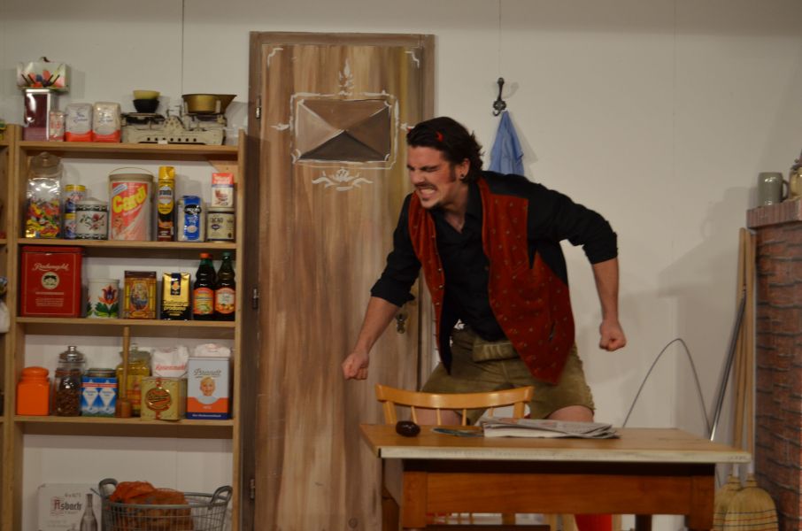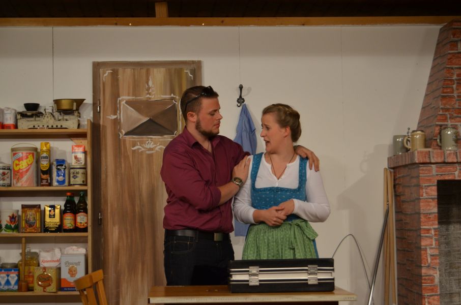 Das Fass kommt zum Überlaufen, als Wally das Liebesglück seiner in die Ehe mitgebrachten Tochter Moni (Marion Bösl) mit dem Briefträger Peter (Tobias Bielmeier) zerstören und sie stattdessen mit dem schmierigen Vertreter namens Gummibandl-Heini (Paul Bergmann) verkuppeln will.
