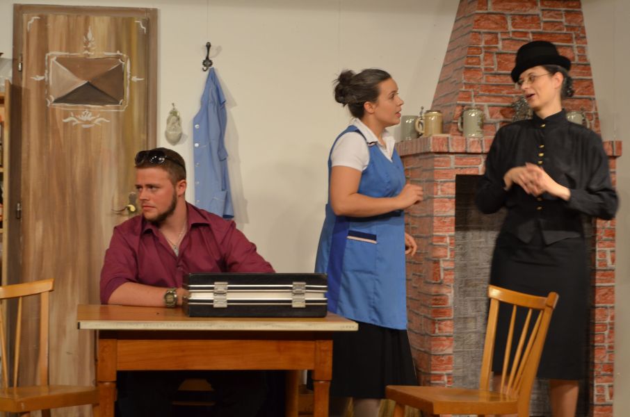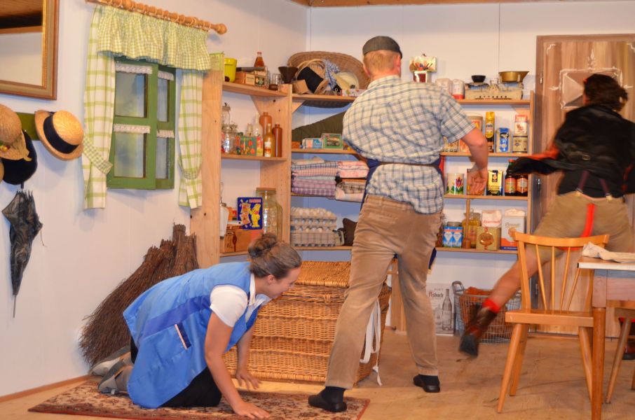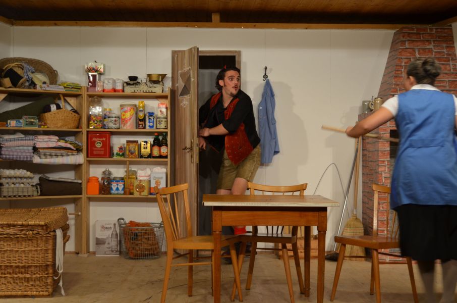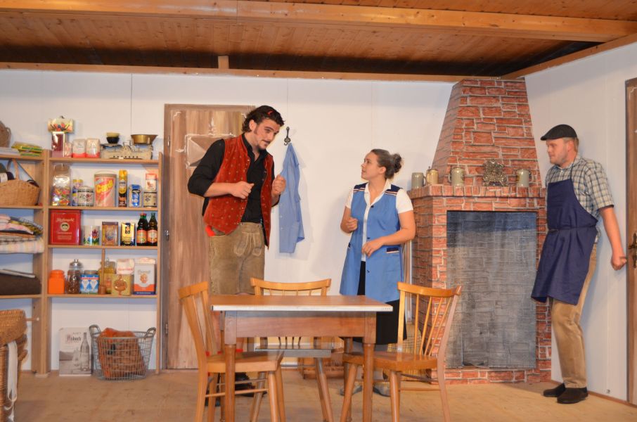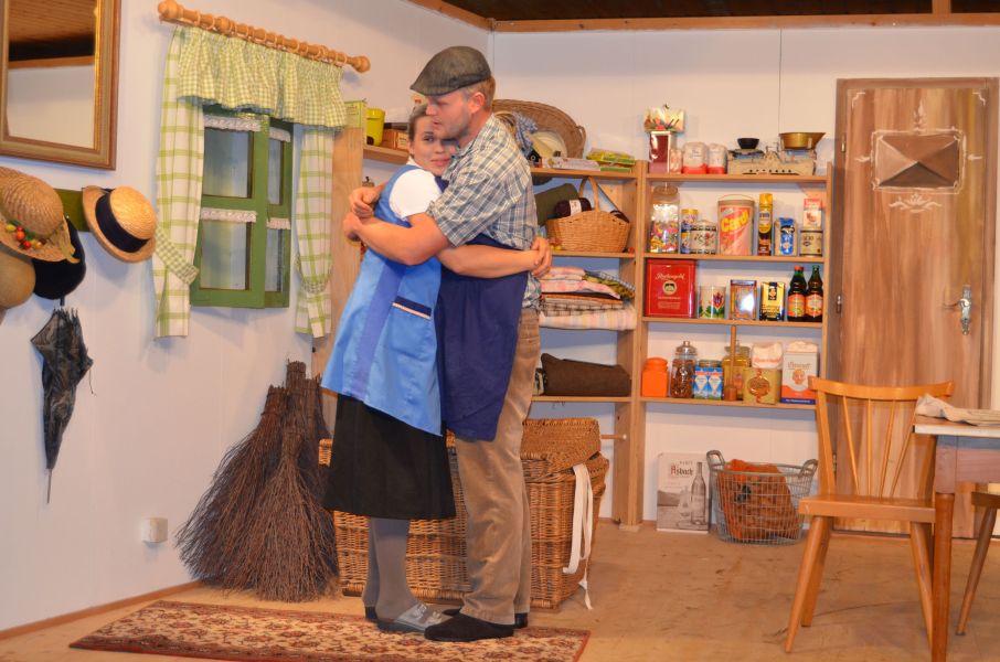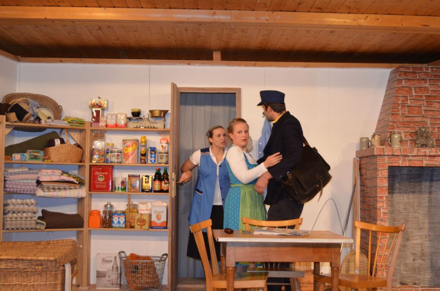 Das Fass kommt zum Überlaufen, als Wally das Liebesglück seiner in die Ehe mitgebrachten Tochter Moni (Marion Bösl) mit dem Briefträger Peter (Tobias Bielmeier) zerstören und sie stattdessen mit dem schmierigen Vertreter namens Gummibandl-Heini (Paul Bergmann) verkuppeln will.