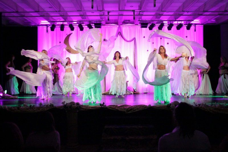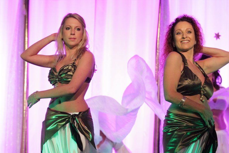 „Es freut mich, dass heute so viele gekommen sind, um unsere Show zu sehen“, so Nadine Kleina, die das Publikum durch den bunten, farbenfrohen Abend führte. Dass nun die arabische Welt mehr zu bieten hat, als die eher negativ geprägten Nachrichten, die die Medienlandschaft dominieren, das wurde schon bei der Ouvertüre deutlich. „Es geht um den Zauber, die Mystik und das Temperament von 1000 und einer Nacht“, so die Leiterin des Tanzstudios. Dabei zeigten die rund 100 Tänzerinnen aber nicht nur klassische Bauch- und Schleiertänze, sondern schlugen gekonnte die Brücke von der märchenhaften Vergangenheit in die ebenso farbenfrohe Moderne.