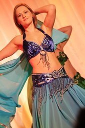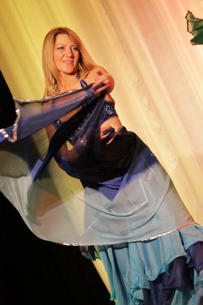 So schillernd diese uns doch meist unbekannte Welt ist, so unterschiedlich waren auch die gezeigten Tänze. Unter anderem konnte ein schöner nostalgischer Schleiertanz im klassischen Stil bewundert werden. Doch nicht nur dieser sehr getragene Stil, der auch bis weit ins Mittelalter zurückreicht, fand Einklang in die Show. Im Gegenteil, feurig und temperamentvoll ließen Sybille und Monika, zwei langjährige Schülerinnen, die Schleier durch die Luft fliegen und rissen das Publikum mit ihrer Darbietung regelrecht mit. Alle Tänzerinnen wurden am Ende ihrer Darbietung mit Applaus überschüttet. Neben den vielen eigenen Schülern - Nadine Kleina betonte in diesem Zuge, dass es eine Studioshow war - standen aber auch vier Profis auf der Bühne.