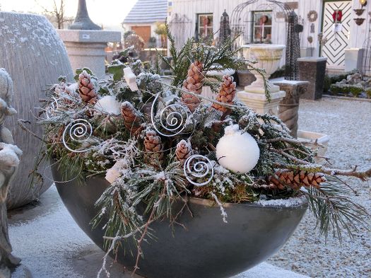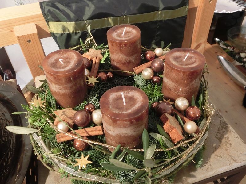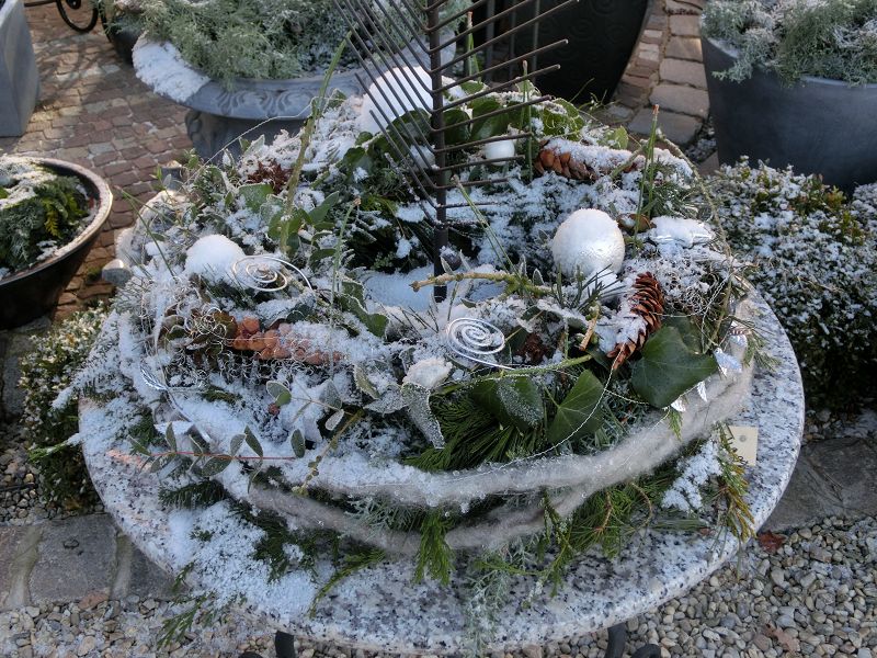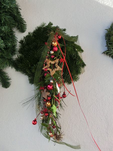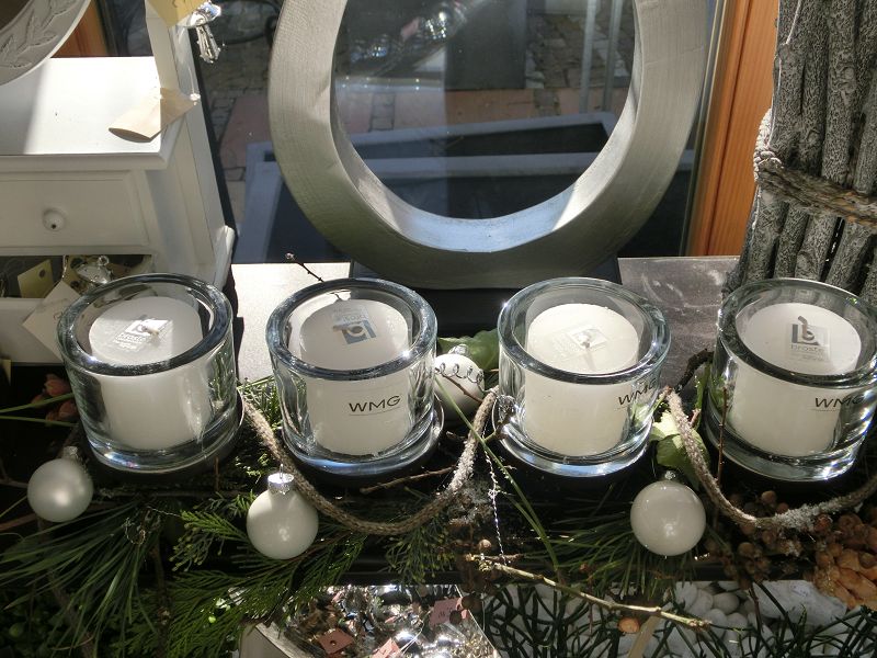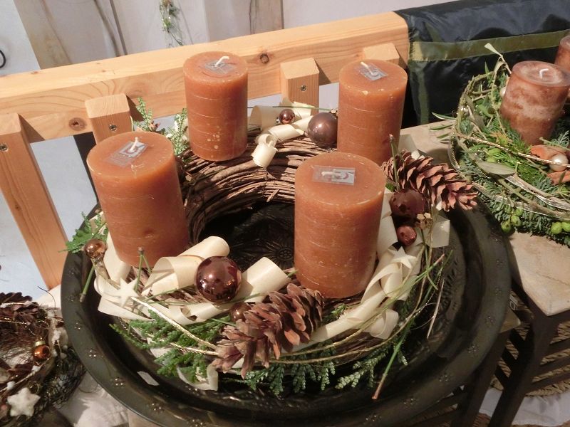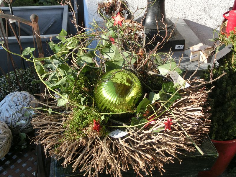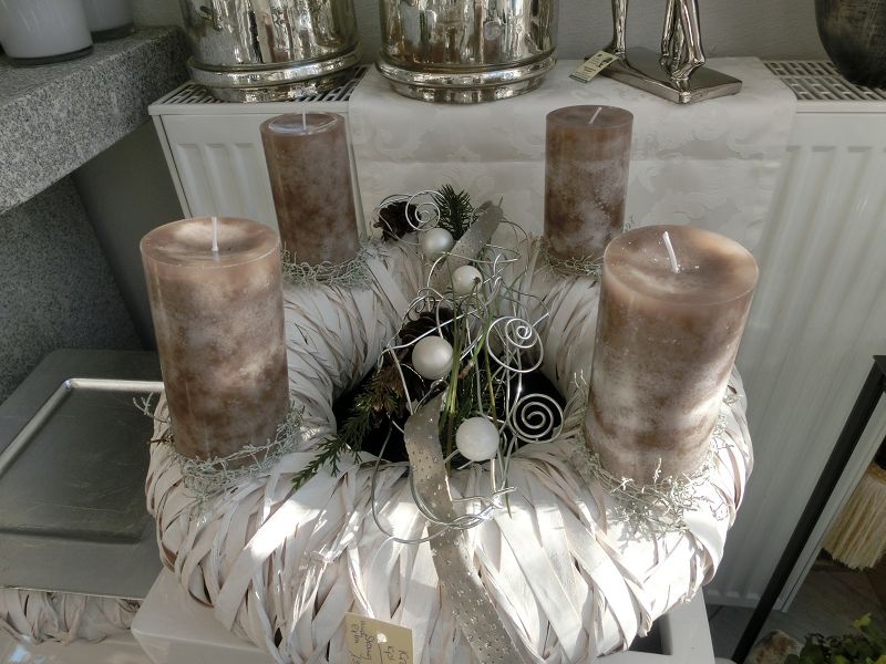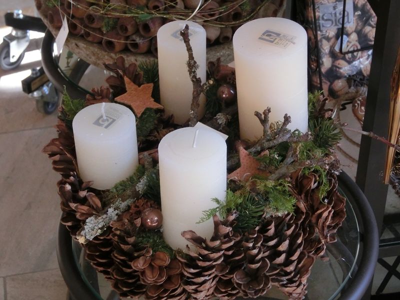 Im Inneren - geschmackvoll wie immer - findet wirklich jeder Besucher Anregungen für die Advents- oder Weihnachtsdekoration. Aber nicht nur Adventskränze, Gestecke oder Türkränze, Kerzenarrangements oder Krippenfiguren, auch Geschenkideen findet man hier. Das könnten Kerzen oder Düfte sein, weihnachtliche Figuren, einschließlich Heiligem Nikolaus, Kissen, aber auch etwas für den gehobenen Anspruch, z.B. versilberte Golfspieler und vieles mehr.