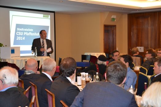 Fraktionsvorsitzender Thomas Röder führte die Wahl recht zügig durch und lobte die jetzige Stadtratsmannschaft als erfolgreiche Opposition im Stadtrat, auch wenn dies in der Presse und Öffentlichkeit scheinbar nicht genügend wahrgenommen werde. Die Kandidaten stellten sich alle kurz vor, wobei gelegentlich kleine politische Spitzen verteilt wurden. So will Altbürgermeister mit seiner Kandidatur die Scharte wieder auswetzen, die das Wahlergebnis 2008 brachte. Nach Meinung des Kandidaten Gerhard Fuchs treibt es die Bunte Koalition im Stadtrat an manchen Stellen zu bunt, und Helga Engelhard-Kraus will die Energiewende in Pfaffenhofen anschieben, weil sie den Eindruck hat, dass das Thema in Pfaffenhofen verschlafen werde. Kandidat Norbert Holzmann, der sich als durch und durch schwarz bezeichnete, ist der bunte Sch.. zu viel, deshalb will er mehr Sitze für die CSU erreichen. Ortsvorsitzender Schranz peilt 13 Sitze im Stadtrat an, noch lieber wären ihm 15 plus X. Während der Auszählungen nach jedem Wahlgang gab es immer wieder Gelegenheit zum Gespräch und der Ortsvorsitzende gab einige statistische Daten bekannt: So liegt das Durchschnittsalter der Kandidatenliste bei 45,2 Jahren, 9 Stadträte kandidieren wieder, 7 Kandidaten sind nicht Mitglied der CSU und 6 Frauen stehen auf der Liste 24 Männern gegenüber.