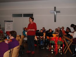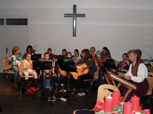 Mit einem Adventlichen Singen feierte die evangelische Gemeinde in ihrem Gemeindezentrum in der Schlesischen Straße die Zeit der Einkehr vor dem Weihnachtsfest. Gisela Kurkowiak begrüßte die Gemeindemitglieder und freute sich, dass so viele gekommen waren um zusammen zu musizieren und zu singen. Für das leibliche Wohl sorgte der Kirchenbauverein mit Glühwein, Kinderpunsch, Limo und Plätzchen. Auch die Gemeindejugend verkaufte wieder die beliebten selbstgebackenen Knusperhäuschen.