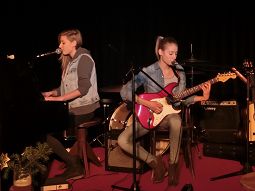 Den Anfang machte diesmal das Duo Sweet Lemon, das sind die 15 jährigen Zwillinge (eigentlich Drillinge, aber die 3. macht ihr eigenes Ding) Sofia und Lena Haslberger aus Au, die mit Klavier und Gitarre selbstgeschriebene Lieder vortrugen. Sie traten bereits am Tollwood und Uferlos sowie in der Kultnacht auf.