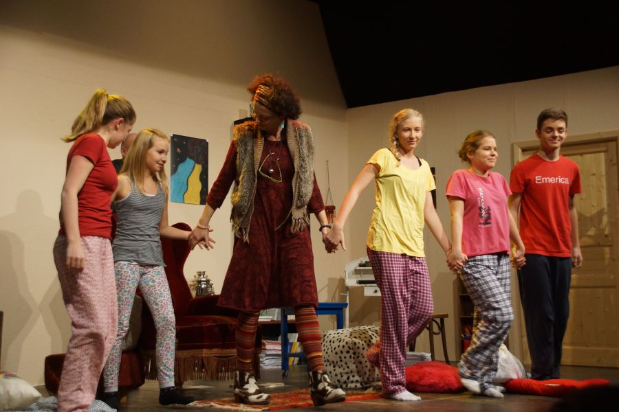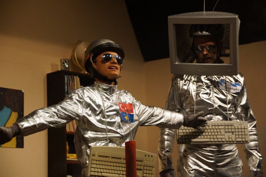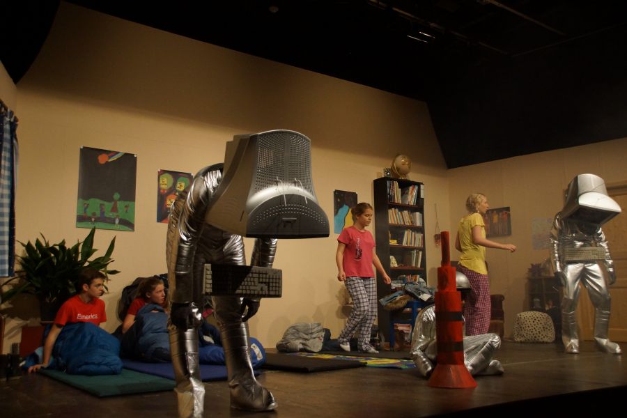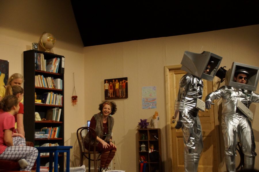 Als die Außerirdischen ihren Mund aufmachten, war das Gelächter im Theatersaal groß. Einer hatte einen ostdeutschen Dialekt, einer sprach in einem gebrochenen Türkisch-Deutsch und der dritte war ein waschechter Moabuaga, was die Kinder doch sehr verwunderte.