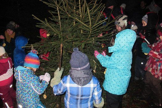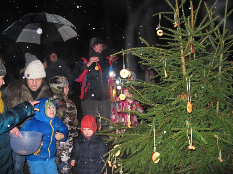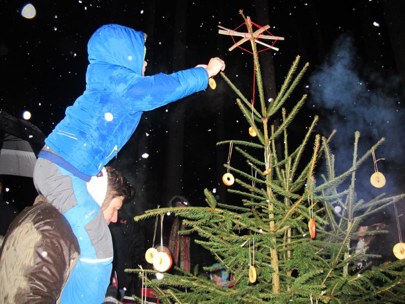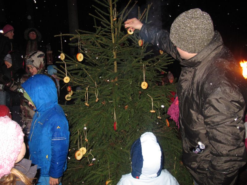 Es wurde aber nicht nur die Waldmaus beschenkt, auch die Hasen und Rehe sollten merken, dass es Weihnachten ist, deshalb wurde noch ein Christbaum mit Apfelringen und Erdnüssen geschmückt.