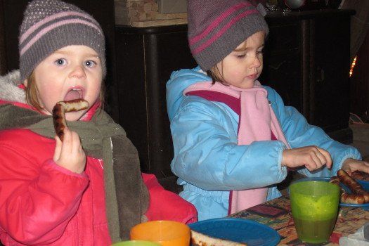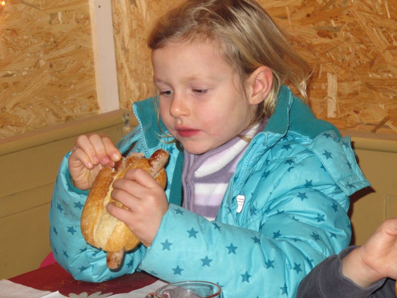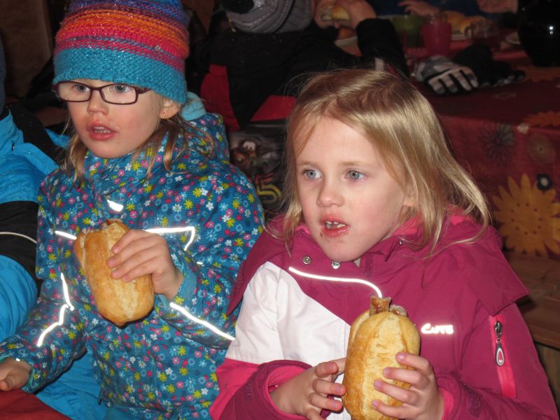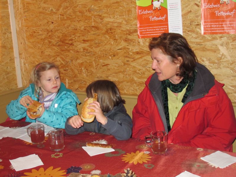 Sogar die Kleinsten langten kräftig zu, denn frische Luft macht hungrig. Danach durfte, wer Lust hatte, noch den Hühnern einen Besuch abstatten und mit Frau Resch Engel basteln.