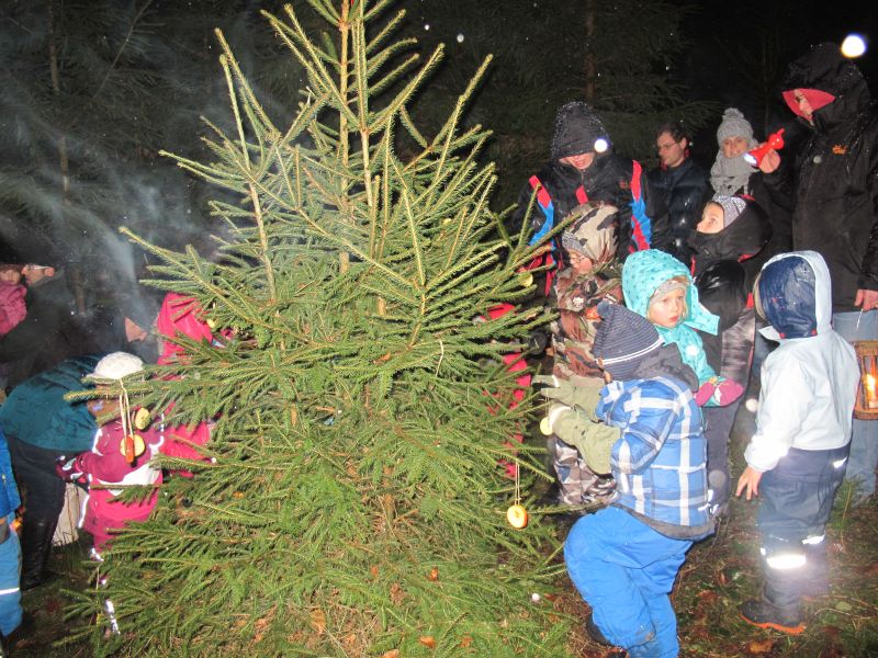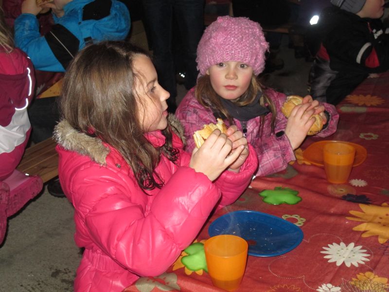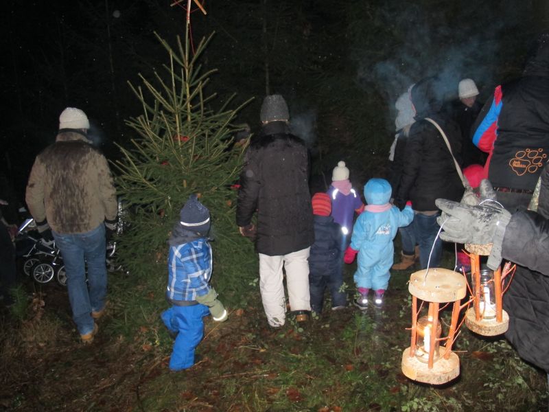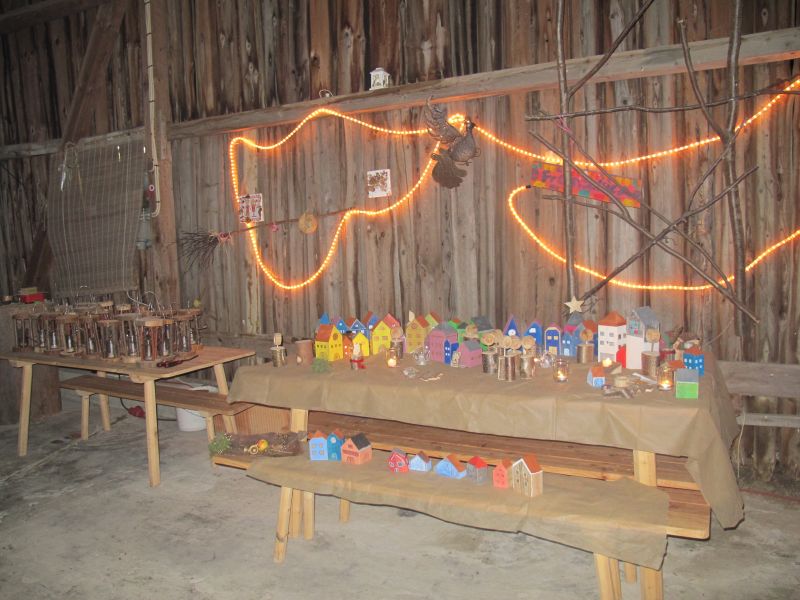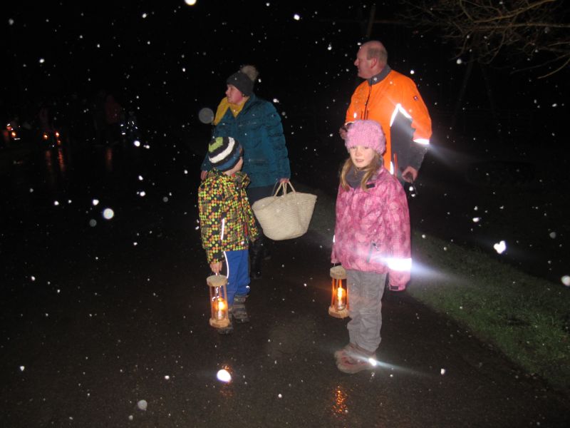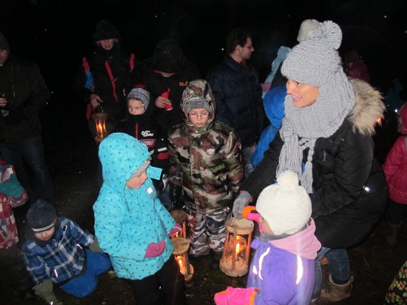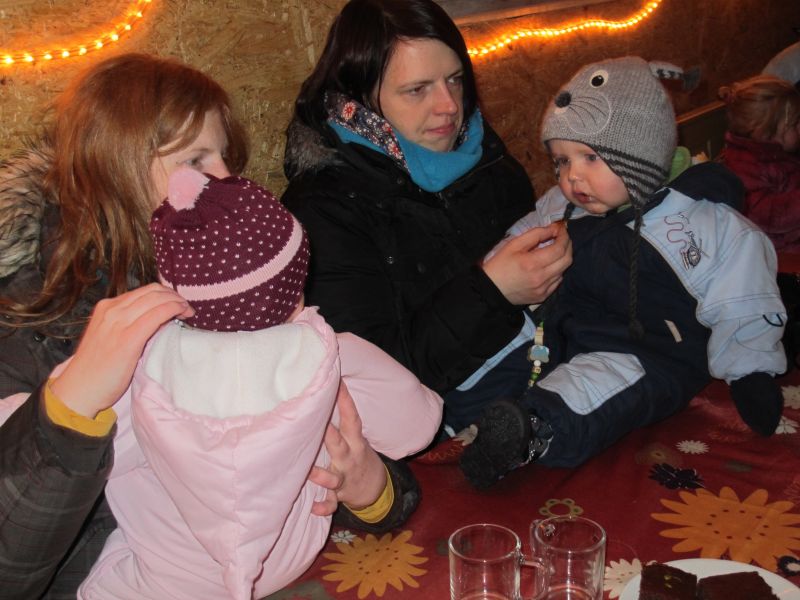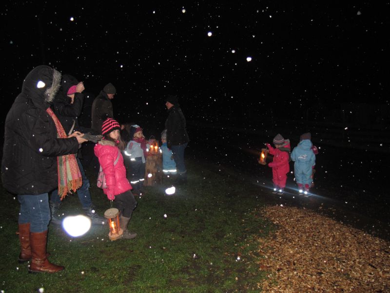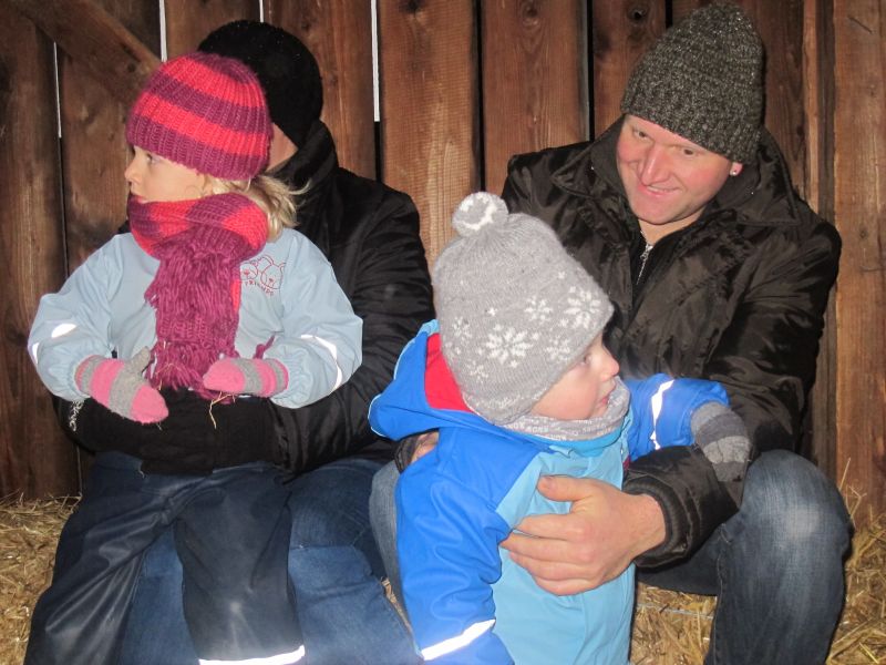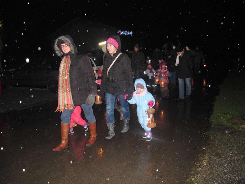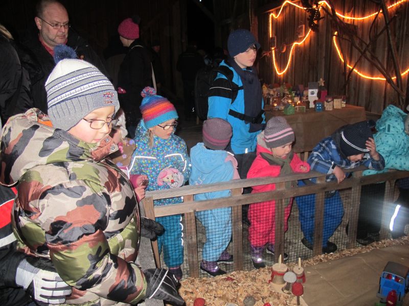 An die 25 Kinder von 0 – 9 Jahren waren mit ihren Eltern zu Besuch bei der Familie Resch, die wie immer alles sehr liebevoll für ihre Gäste vorbereitet hatte. Im romantischen Stall standen Laternen für die Wanderung in den nahen Wald bereit, eine Holzstadt konnte von den Kleinen bewundert werden und eine Eisenbahn zog ihre Kreise.
