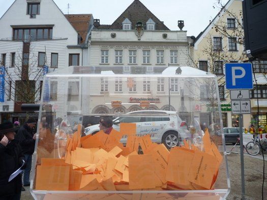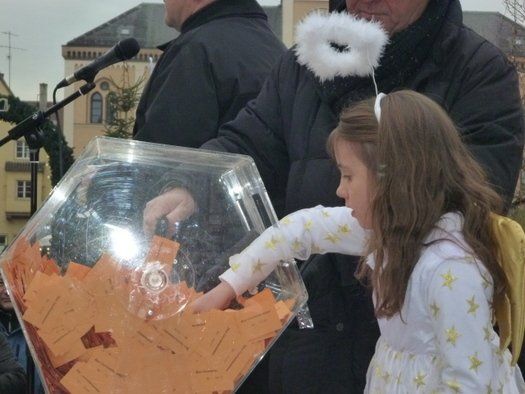 Samstagnachmittag in Pfaffenhofen, 14:00 Uhr, Hauptplatzbühne vor dem Hauptgewinn. Für den Lospreis von 1 Euro hatte jeder Teilnehmer die Chance, den Hauptpreis, einen VW Golf 7 im Wert von 22.000 Euro zu gewinnen. Auch die nachfolgenden 9 Hauptgewinne können sich sehen lassen. Ein neues Glücksengelchen hatte die schicksalhafte Aufgabe, die zehn „orangen“ Gewinnerlose unter notarieller Aufsicht zu ziehen.
