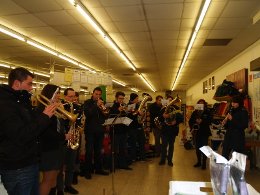 Über die stattliche Summe von 450,- Euro freute sich Martin Krumbucher der 2. Vorsitzende des Fördervereins der Marktkapelle Au samt einiger Mitglieder, die zur Spendenübergabe mitgekommen waren. Mit einem musikalischen Dankeschön an Jürgen Appel und sein Team nahmen sie diese Spende gerne entgegen. Unterstützt wird damit die Jugendblaskapelle des Vereins für den Kauf von Noten und die Finanzierung von Leihinstrumenten.