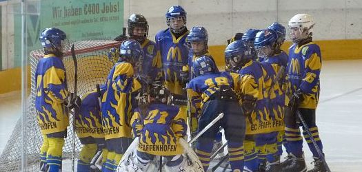 Die körperlich überlegenen Dingolfinger hatten die U12-Mannschaft, die hauptsächlich aus Bambini-Jahrgängen besteht, wohl zunächst unterschätzt, legten dann aber los und erzielten in Minute 13 den Anschlusstreffer und kurz vor Ende des ersten Drittels mit einem Doppelschlag gar die Führung zum 3:2. Zu Anfang der zweiten 20 Minuten sah es dann so aus, als würden die Pfaffenhofener hier eine richtige Packung kassieren, das Spiel nach vorne klappte nicht mehr, die Verteidiger hatten Probleme, dem Ansturm der zum Teil zwei Köpfe-größeren Dingolfinger Stand zu halten und Goalie David Schätzl, der insgesamt wieder eine klasse Partie ablieferte, konnte nicht alles verhindern und musste gleich zweimal hinter sich greifen.