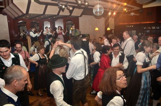 Fest etabliert zu Silvester hat sich das Volkstanztreffen im Pörnbacher Gasthof Bogenrieder mit seiner nunmehr sechsten Auflage. Auch zu diesem Jahreswechsel spielten dort die Musikanten auf zur Tanzlmusi. Über 160 Gäste drehten sich zu Zwiefachen und Boarischen auf dem Parkett des Wirtshaussaales. Viele davon kamen in Tracht, was die Veranstaltungssprecherin Viktoria Zäch "b'sonders g'freit" hat. Ein Tanzpaar aus Erlangen hatte wohl die weiteste Anreise an diesem Abend und die Musikanten hegten die sicherlich berechtigte Vermutung, dass die Volkstanzbegeisterten aus allen bayerischen Regierungsbezirken gekommen sind. Nach dem Auftanz mit "Hochzeitsmarsch", "Hans bleib do" und "Gföller" standen bis über Mitternacht von der Topporzer Kreuzpolka über den Niederbayerischen Landler bis hin zum Mexikanischen Walzer noch 14 Stückl auf dem Programmzettel.