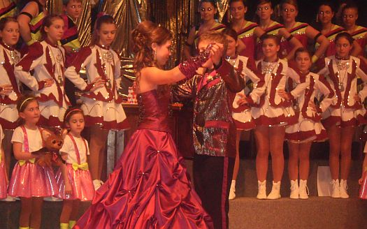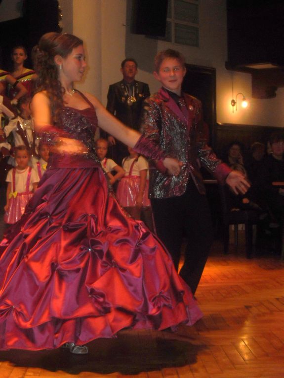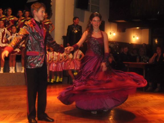 In ihren anmutenden Roben zeigten Prinzessin Lena I. und ihr Prinz Manfred I., dass sie ein ausgeprägtes Maß an Taktgefühl besitzen. Perfekt schwebten sie im Rhythmus der Musik wie zwei Tanzprofis übers Parkett. Dass sie nicht nur zu langsamer sondern auch zu fetziger Musik ihre Körper bewegen können, bewiesen sie im anschließenden Latino Tanz und brachten den Saal zum Beben.