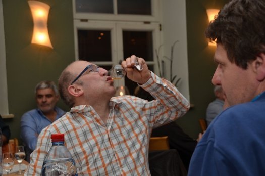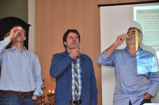 "Wenn man etwas über Whiskey lernen will, muss man dreimal in der Woche trainieren", meinte Engelniederhammer augenzwinkernd. Und der Malt Ambassador war auch um den einen oder anderen gute Tipp nicht verlegen. Beispielsweise den, wie man unerwünschte Partygäste wieder los wird: Whisky mit 90 Prozent Alkoholgehalt verabreichen, ganz einfach. Demmel und zwei andere Gäste stellten sich mehr oder weniger freiwillig für das diesem Tipp folgende "hochprozentige Experiment" zur Verfügung und probierten das eigenmündig aus. "Da spürst du jeden Zahn einzeln", meinte Demmel nach einem kleinen Schluck dieses Feuerwassers, während die Taubheit in seinem Mundraum sehr, sehr langsam dahinschwand.