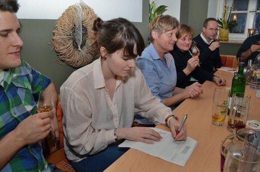 Nach diesen einleitenden Worten ging es aber auch schon los mit dem Spüren nach der Segmentierung unterschiedlicher Aromen. Die diversen Proben wurden von den Teilnehmern akkurat auf vorbereiteten Bögen nach Farbe, Duft, Körper, Geschmack und Abgang klassifiziert.