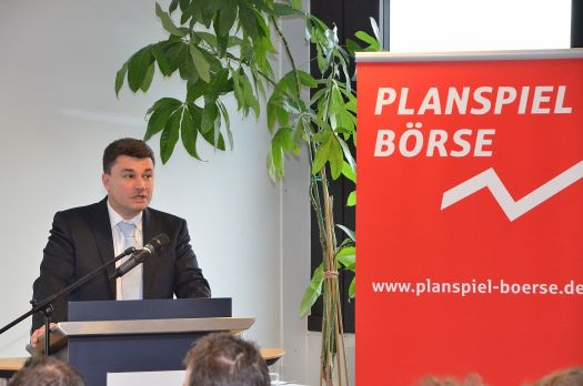 Sparkassenvorstand Andreas Pöhlmann freute sich über die engagierte Beteiligung der Schüler beim Börsenspiel.