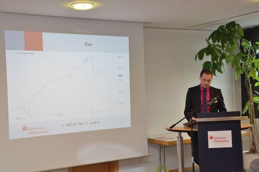 Davor allerdings gab Sparkassen-Vermögensmanager Alexander Schmid noch einen Rückblick auf das vergangenen Jahr am Anlagenmarkt. So sei wider erwarten der Goldpreis rückläufig gewesen. Besser hätten die im DAX gehandelten Aktien abgeschnitten, und zwar mit einem Plus von 25 Prozent. Als Treiber der Kuse identifizierte Schmid unter anderem die Chefs der Notenbanken.