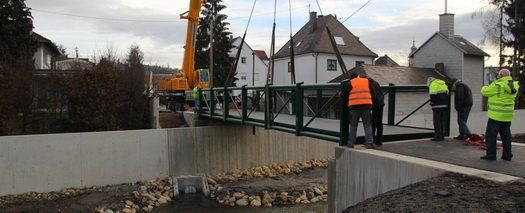 Viele Bürger fragten sich schon wann denn der neue Steg endlich installiert wird, denn für Fußgänger und Radfahrer ist dies ein beliebter Weg ins Zentrum. Nach nun einigen Wochen des Wartens wurde der Stahlkoloss millimetergenau mit einem großen Autokran eingepasst. Natürlich kann die neue Fußgängerbrücke noch nicht sofort für die Bevölkerung freigegeben werden, denn zum einen muss sie noch fest mit dem Fundament verbunden werden, andererseits müssen aber auch noch die Geländer installiert werden. Doch auch das wird nicht mehr allzu lange dauern.