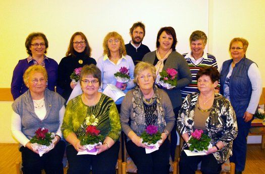 Gleich nach dem Gottesdienst ging es ins Pfarrheim zur Jahreshauptversammlung des Auer Frauenbundes. Und wie es sich gehört für eine Frauenbundversammlung, gab es zuerst einmal Kaffee und selbstgebackene Kuchen. Für 40 Jahre Treue am Verein wurden Maria Goldbrunner, Hilde Hellerbrand, Rita Littl und Johanna Widmann von der Bezirksvorsitzenden Christa Mirlach mit einer goldenen Ehrennadel ausgezeichnet. 1. Vorsitzende Helga Elfinger, 2. Vorsitzende Ulla Hiltenberger und Pfarrer Bertold Heller gratulierten herzlich. Als neue Mitglieder konnten Doris Hadersdorfer, Cornelia Scholz, Evelyn Zankl und Marianne Ernst begrüßt werden.
