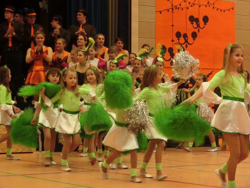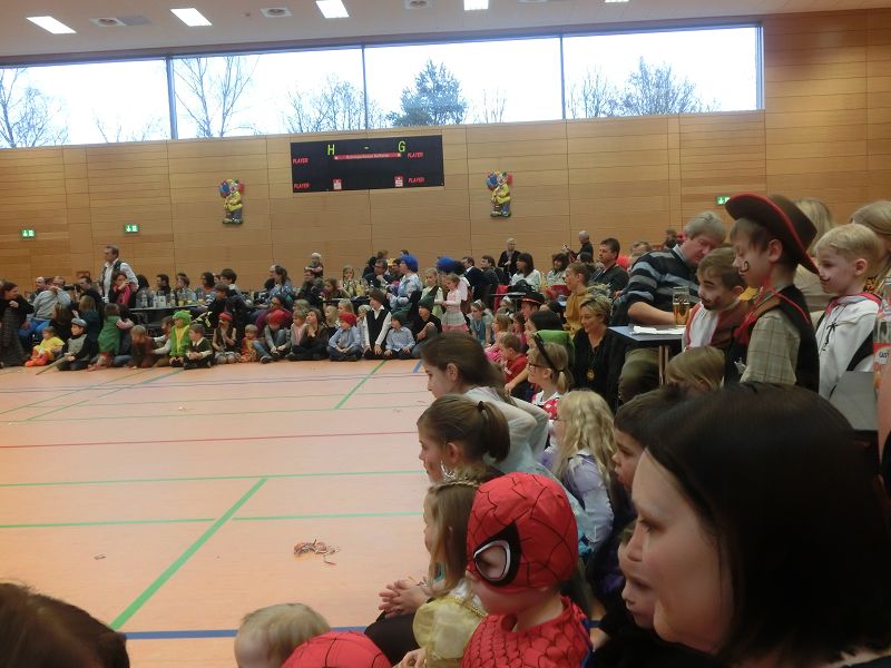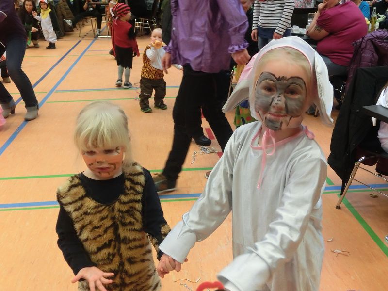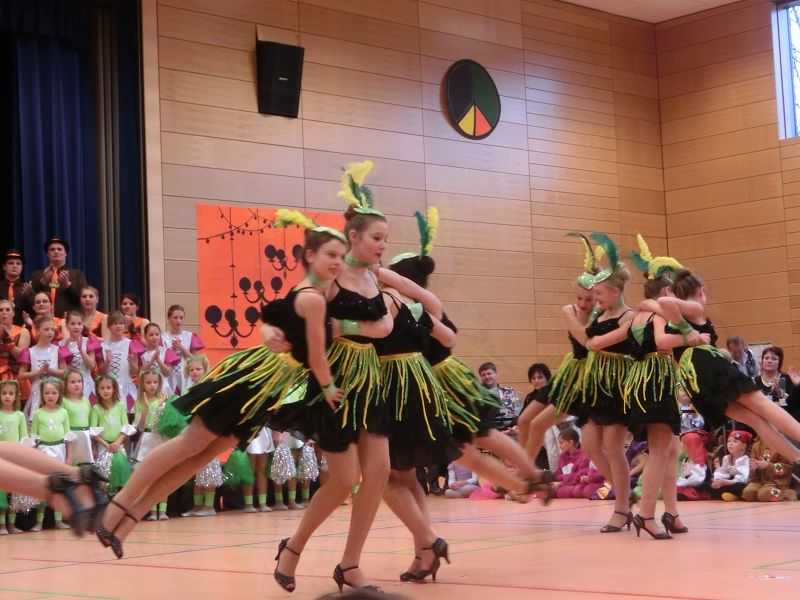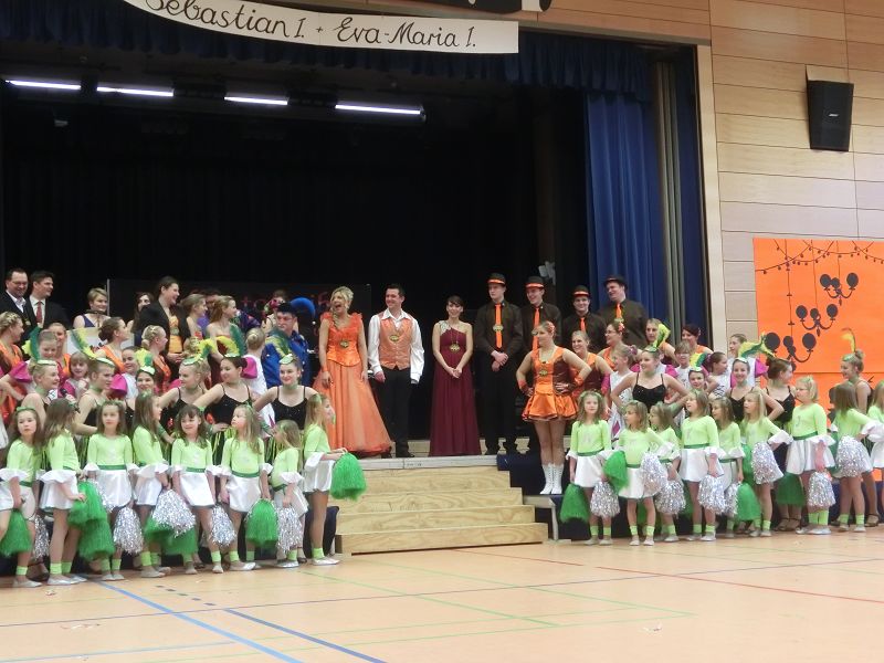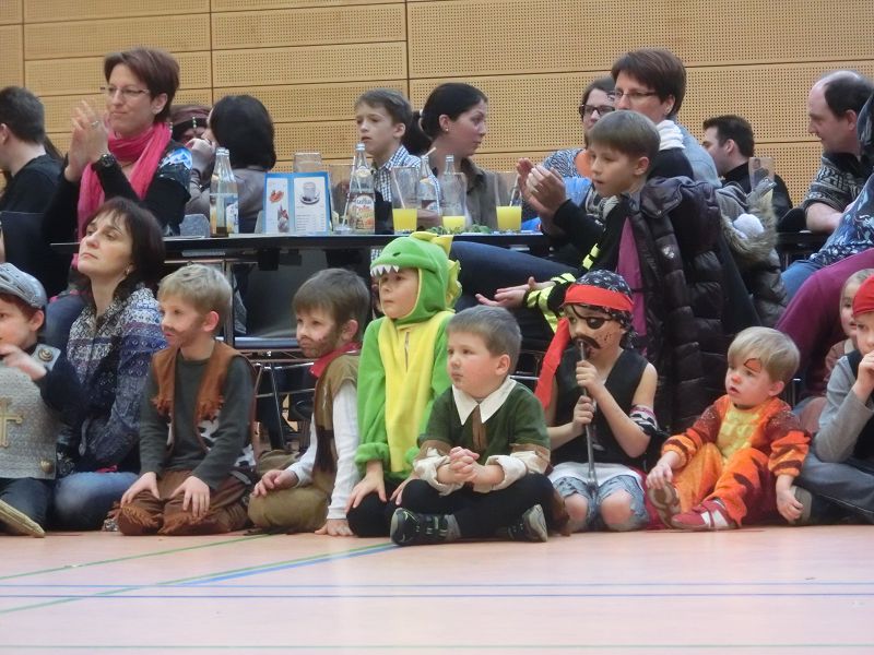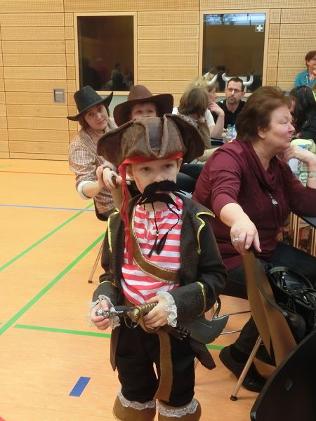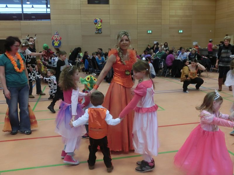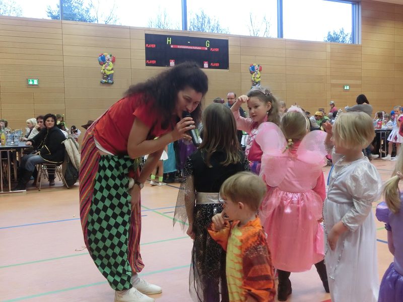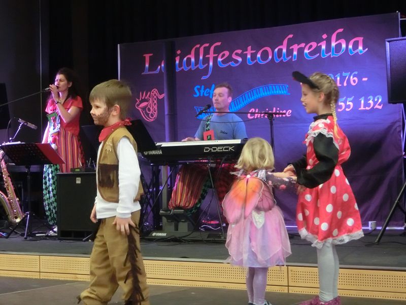 Große Begeisterung gab es dann beim Einzug des Faschingsprinzenpaares und seines Hofstaates. Zuerst traten die ganz Kleinen als Cheerleaders auf, dann die Kindergarde und die Teenies als heiße Brasilianer. Nach einer kurzen Tanzpause, in der sogar Ihre Lieblichkeit, Eva-Maria I. , mit den kleinen Besuchern tanzte, gab es dann noch Auftritte von der Garde und dem Prinzenpaar. Christine, aus der Gruppe "Leidlfestotreiba" machte diesem Namen alle Ehre und schaffte es spielend, die Kinder zum Mitmachen zu animieren. So hüpften sie wie Känguruhs, schlichen sich an wie die Indianer oder ritten wie die Cowboys. Die Eltern genossen dabei Kaffee und Kuchen, die Kinder tobten sich richtig aus.