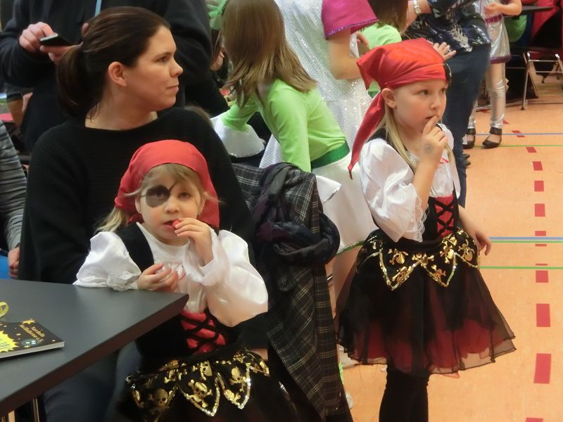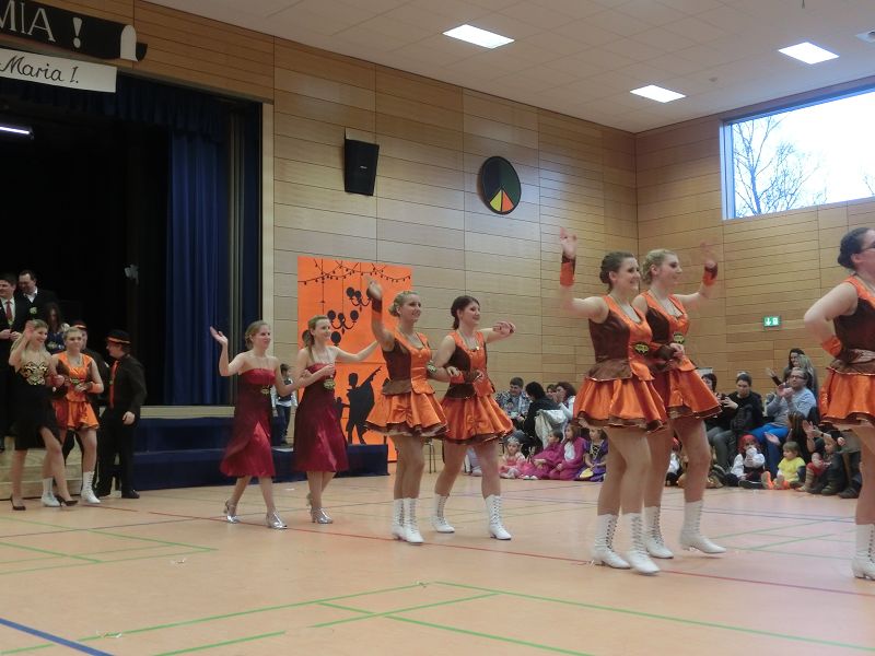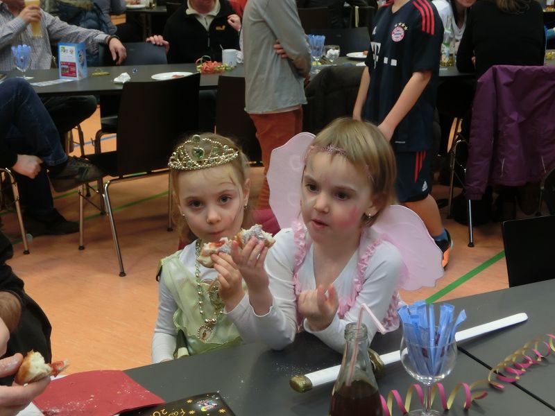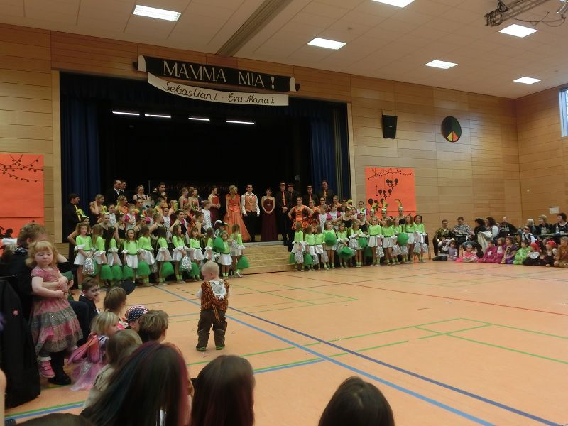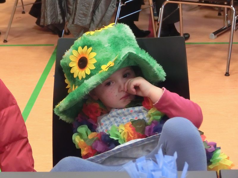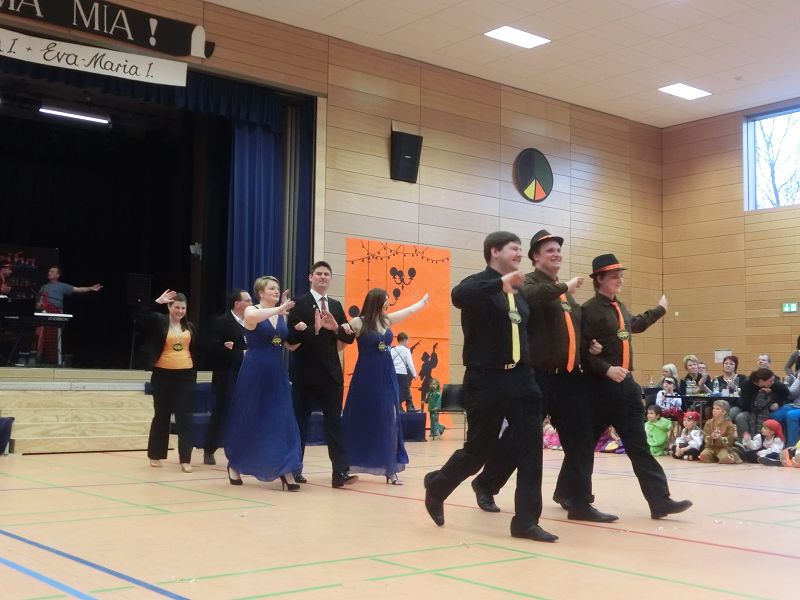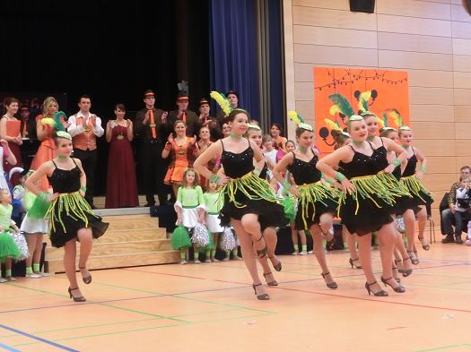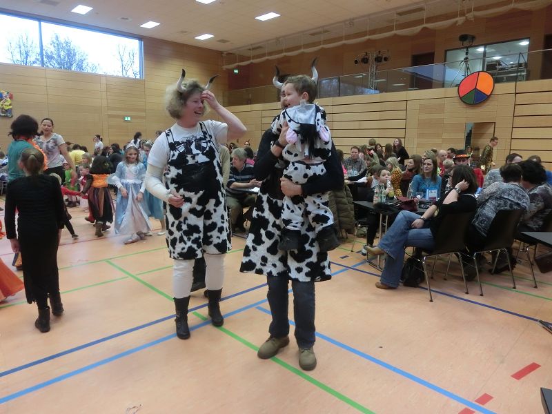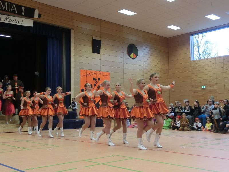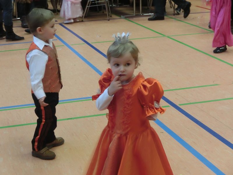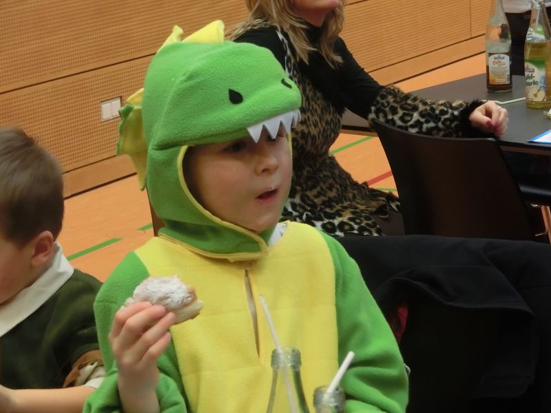 Große Begeisterung gab es dann beim Einzug des Faschingsprinzenpaares und seines Hofstaates. Zuerst traten die ganz Kleinen als Cheerleaders auf, dann die Kindergarde und die Teenies als heiße Brasilianer. Nach einer kurzen Tanzpause, in der sogar Ihre Lieblichkeit, Eva-Maria I. , mit den kleinen Besuchern tanzte, gab es dann noch Auftritte von der Garde und dem Prinzenpaar. Christine, aus der Gruppe "Leidlfestotreiba" machte diesem Namen alle Ehre und schaffte es spielend, die Kinder zum Mitmachen zu animieren. So hüpften sie wie Känguruhs, schlichen sich an wie die Indianer oder ritten wie die Cowboys. Die Eltern genossen dabei Kaffee und Kuchen, die Kinder tobten sich richtig aus.
